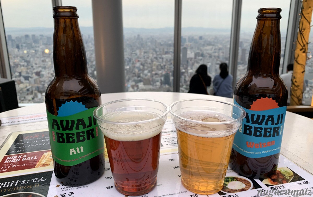 あいにく雲が出て来て綺麗な夕焼けは見られなかったが、淡路ビールなるビールを飲みつつ暗くなるのを待つことに。