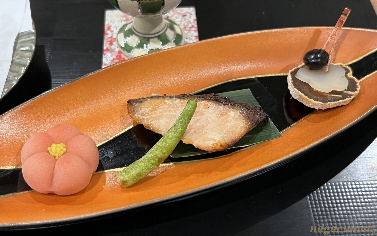 花もちとび梅、鮭塩麹焼、黒豆松葉串