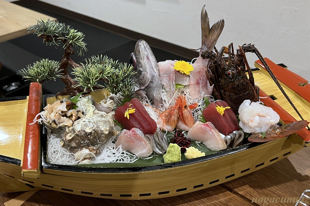 お刺身は、伊勢海老、黒むつ、甘海老、さざえ、きびなご、鮪、かんぱち