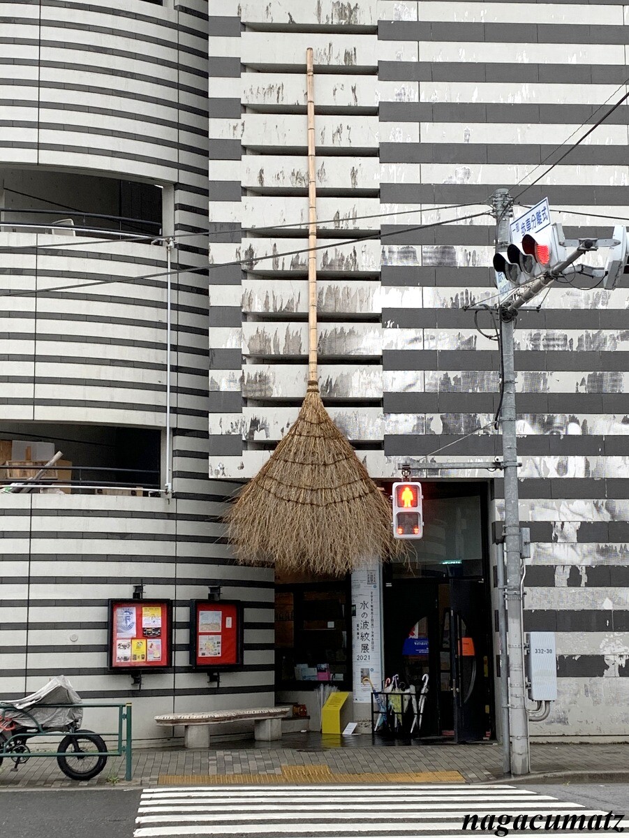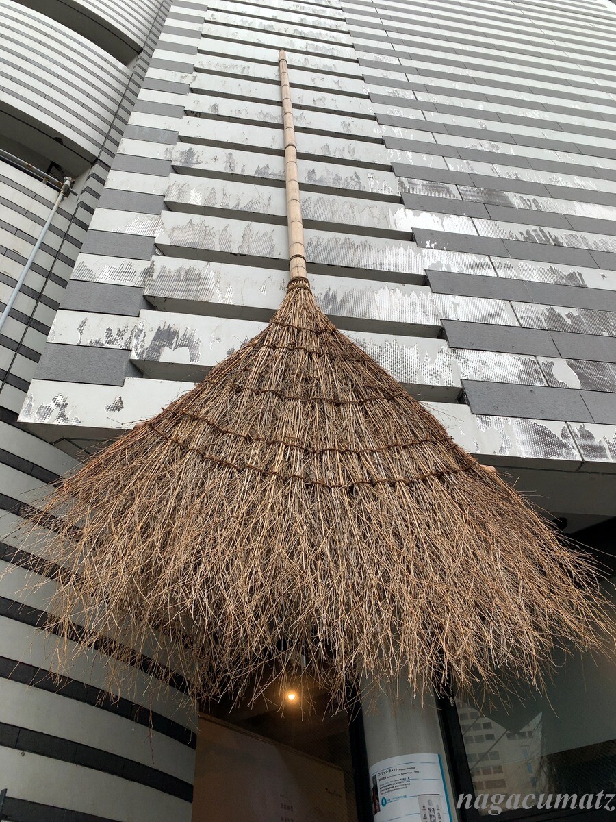 ホアン・ヨンピン Huang Yong Ping「竹箒(たけぼうき)」1995年 天安門事件の時に中国からパリに移住した作家。一昨年没。ワタリウム美術館の建物入り口にある全長7メートルの箒は、出入りする人達の禍を掃き出してくれるのだそう。