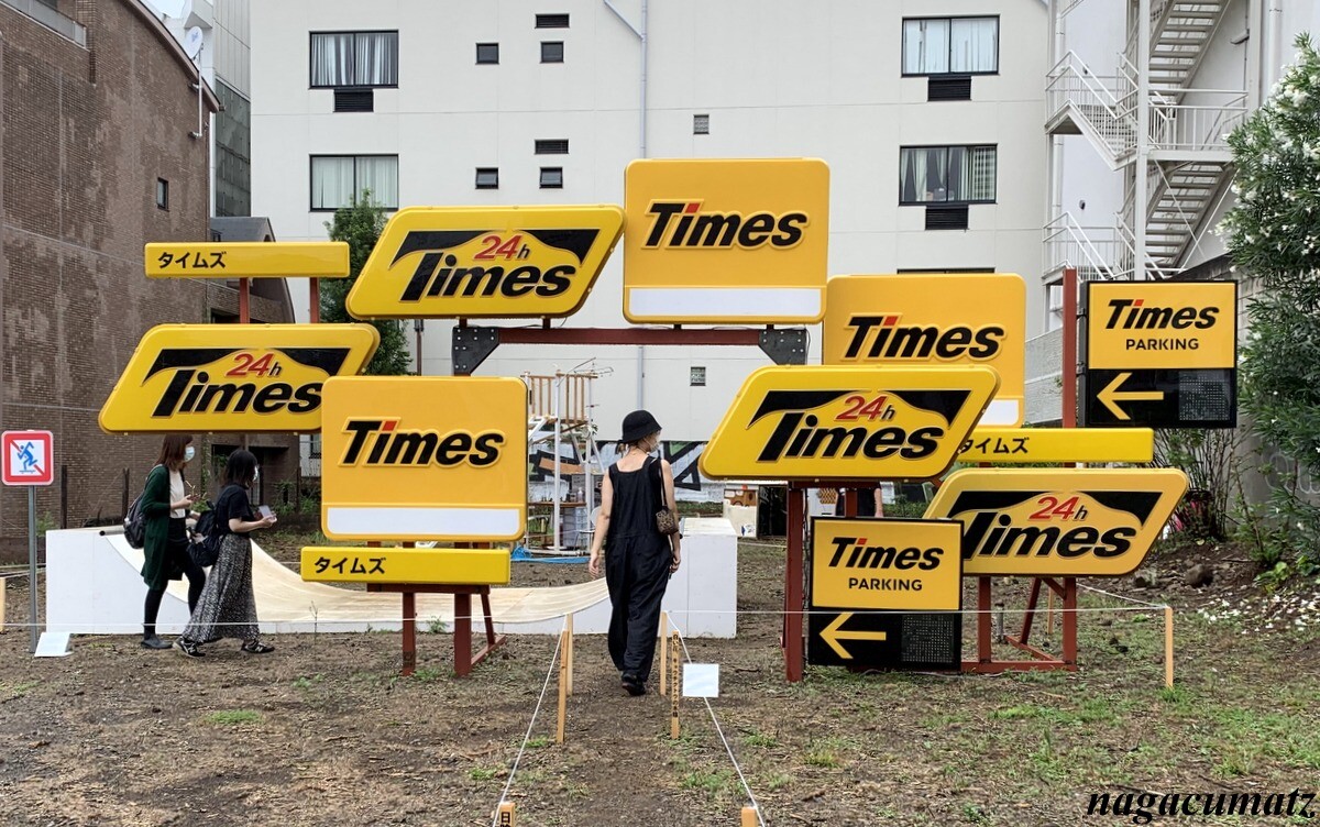 EVERYDAY HOLIDAY SQUAD「TIME TUNNEL」タイムズ24(株)から許可を得て制作されたゲート。都市では古い建物が壊されコインパーキングになっていると。