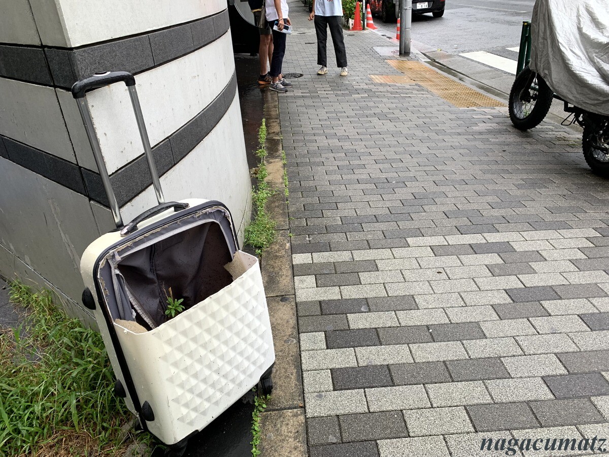 石毛健太「Alien Carrier」キャリーケースをドネーションしてもらい、そこに雑草を植えて「移動すうことのできる鉢植」と。