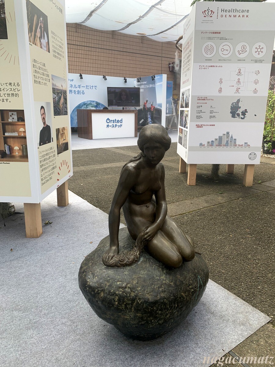 人魚姫の像のレプリカも。コペンハーゲンに行った時に実物を見たが、あまりに小さくて、世界三大ガッカリ(ほかにシンガポールのマーライオン、ベルギーの小便小僧)に選ばれているわけだと納得したものだが💦