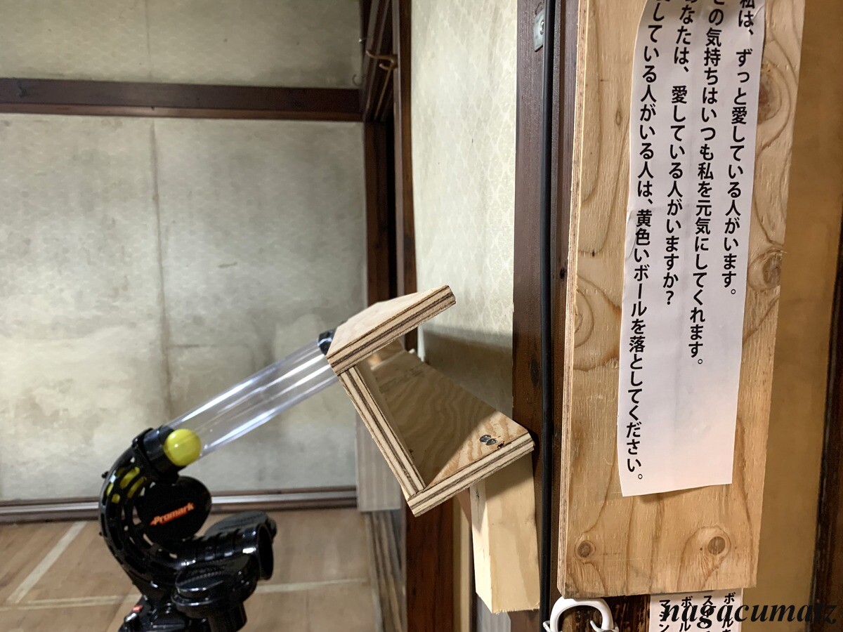 別の部屋では、穴にボールを入れると、そこからシューティングマシーンに行って勢い良く飛んで行く。