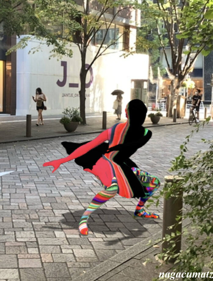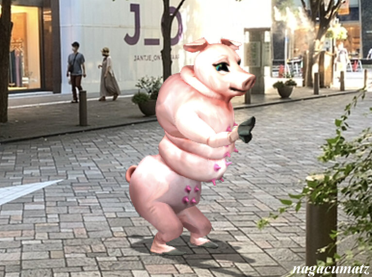 ARにより、踊るお相撲さんなど色々な人や豚さんをスマホ越しに見ることが出来る。