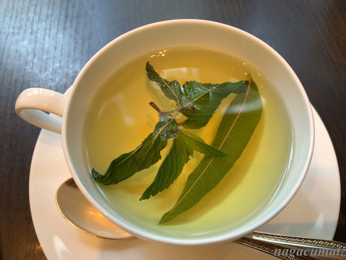ハーブティーは、レモンバームとブラックペパーミントを合わせてもらった。乾燥葉なのだそうだが、あっという間に良い香りを放っていた。