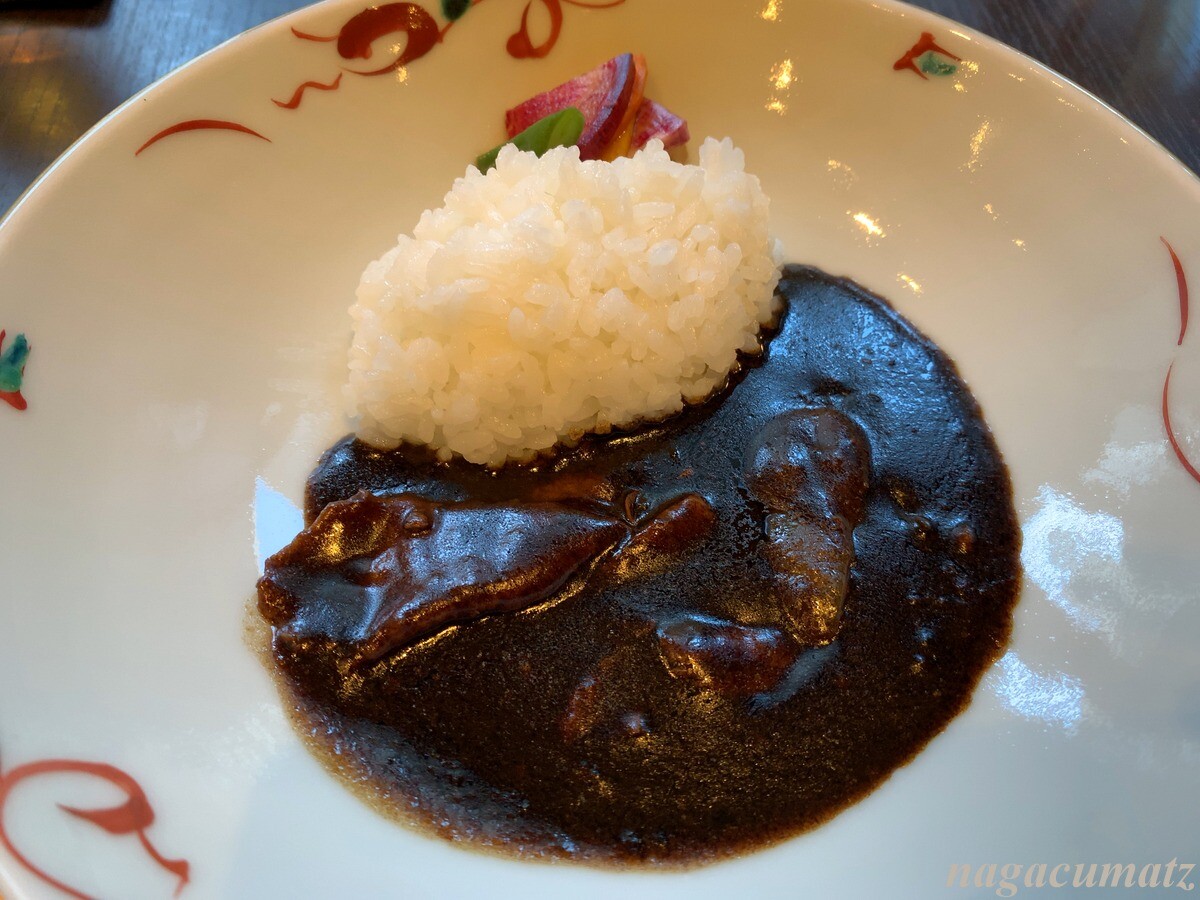お目当てのメンチカツ。牛肉の色々な部位と豚肉とのブレンドとのこと。時期によって牛さんの脂ののりも異なり、お味も変わる。そしてその季節によって、パン粉の為のパンも変えられるのだそう。切ると肉汁が出てくるのだが、脂っこ過ぎず、ほんのりナツメグの香りがする。まずはこのままで頂くが美味。そして自家製のウスターソースで。そのウスターソースがタマネギの甘さなどもしっかりあり、そのソースだけでも美味しい上、メンチカツにかけるとより複雑なお味となって美味しい。
