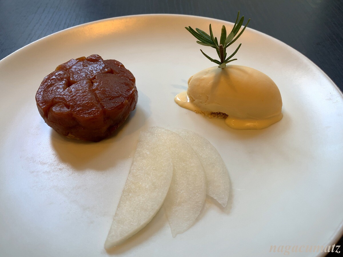 私は通年にはないということでタルトタタンを。横にはローズマリーのアイスクリームと、和梨の幸水が付く。
