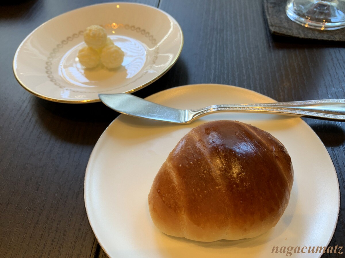 自家製のミルクパン。シンプルなのだが、中の生地の柔らかさや甘さと外側の香ばしさが美味しい。