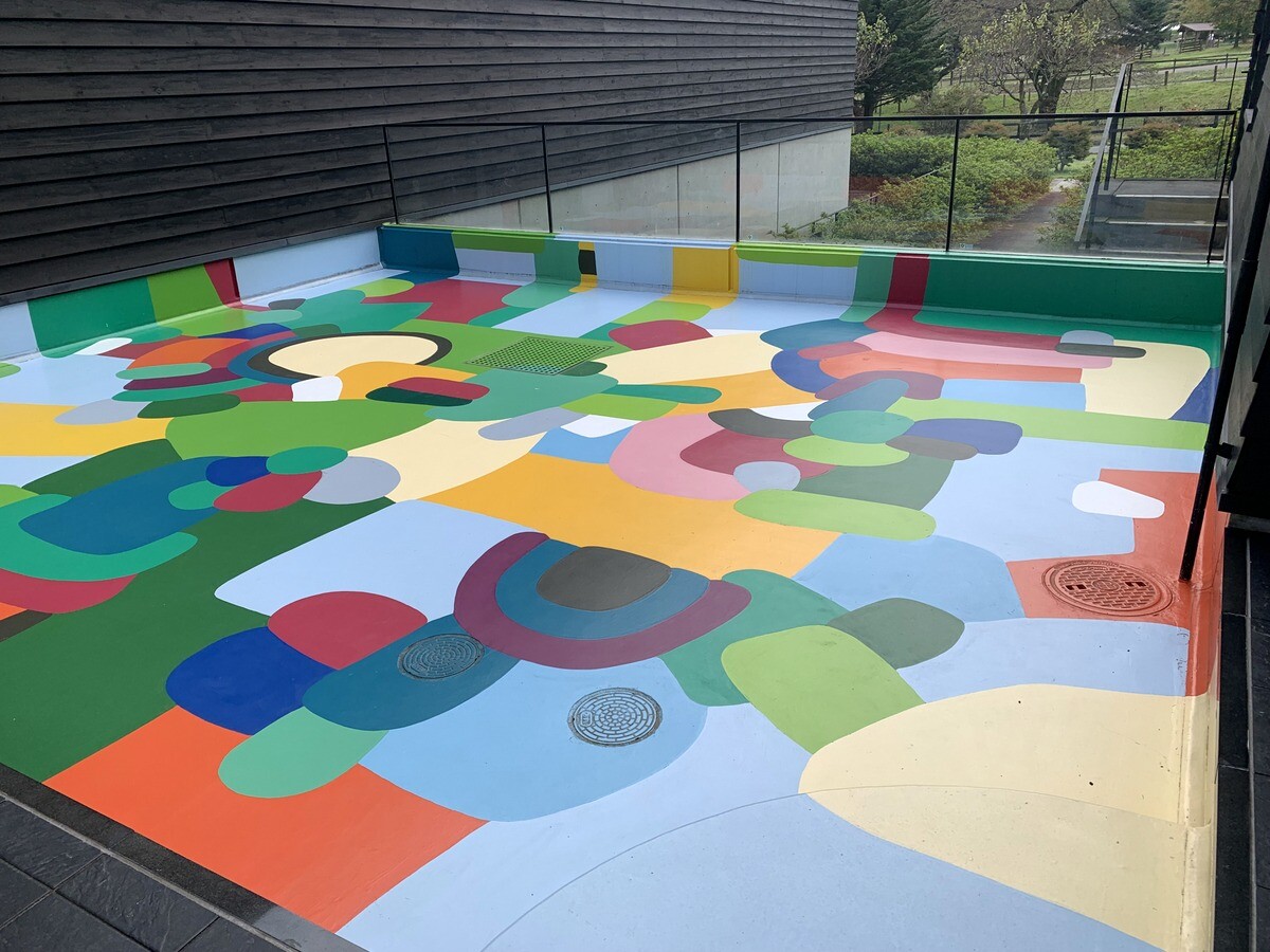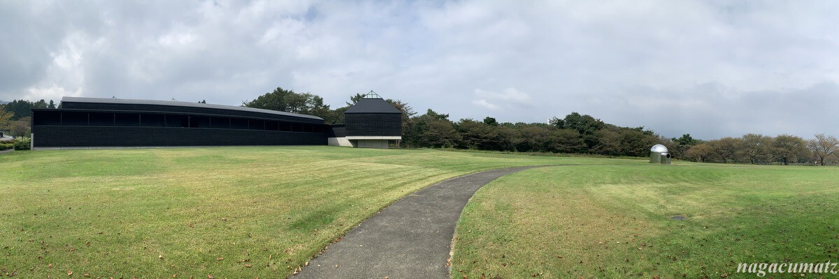 広い芝生エリアから、美術館の建物を見下ろしているかのよう。