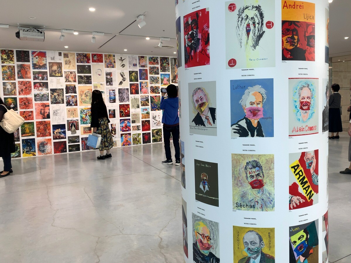 2020年5月に、横尾氏はご自分の作品や写真を中心にマスクをコラージュした「WITH CORONA」シリーズを発信し、2021年4月からは「WITHOUT CORONA」に名称を変更。この展覧会が開催され始めた7月で約700点にコラージュを施しておられ、それらの画像が撮影可能となっていた。前述の 21_21 DESIGN SIGHT での個展で発表されていたポートレートなどもある。
