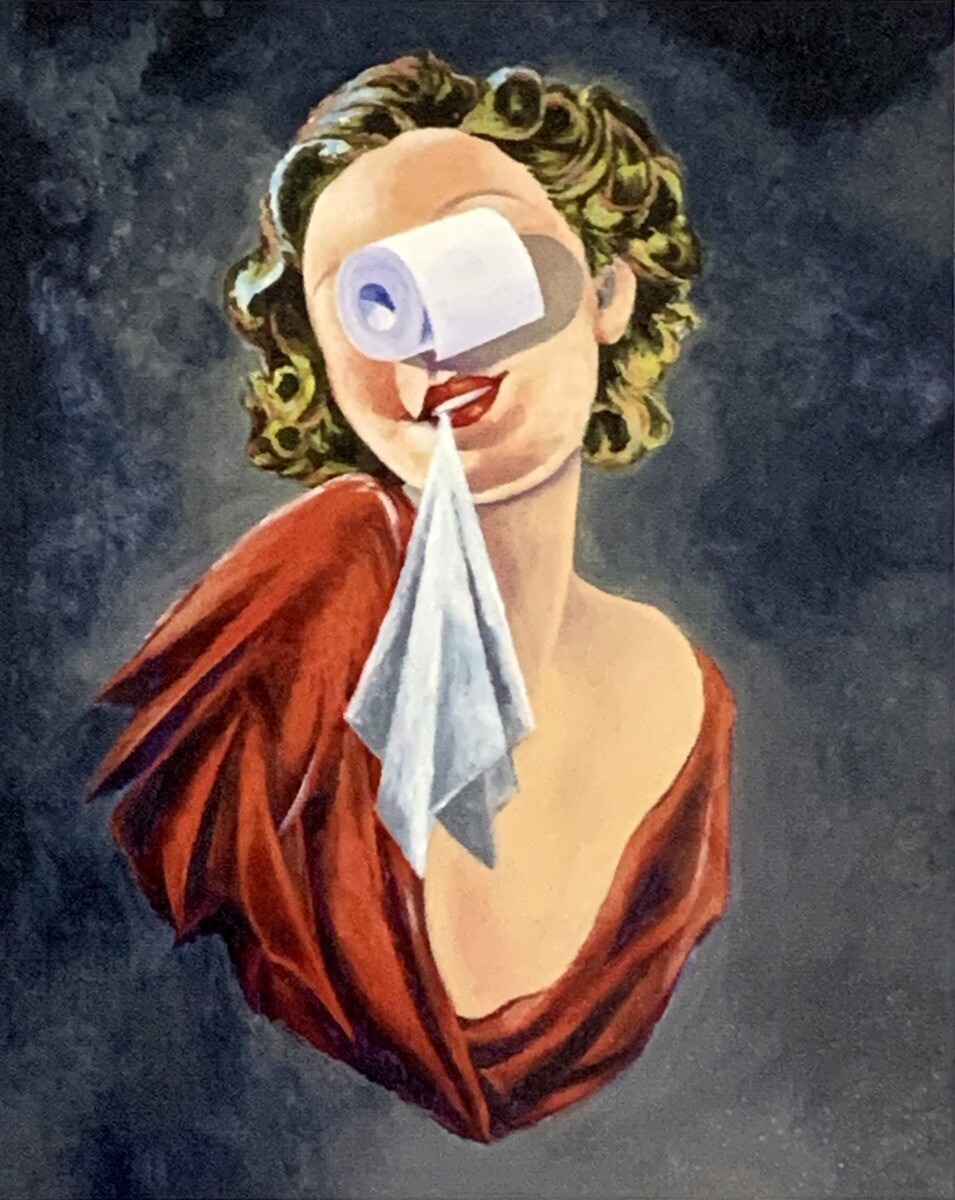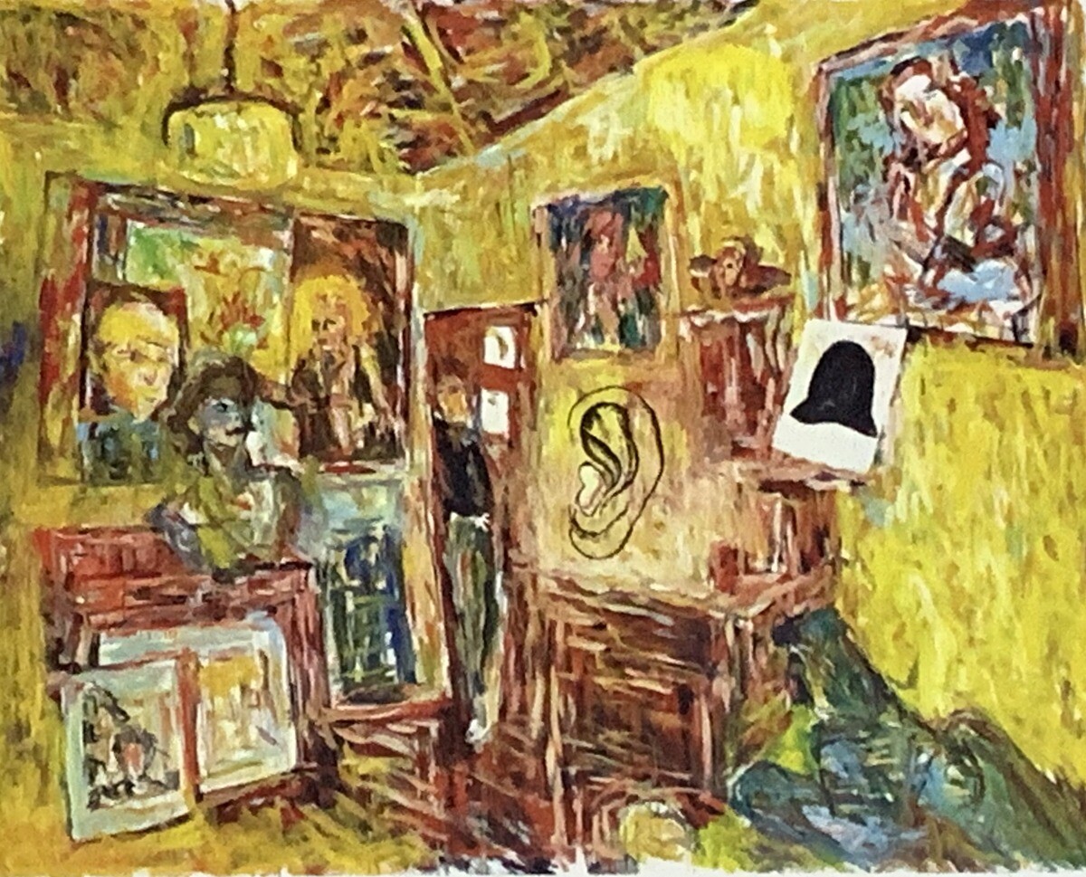 「高い買物」2020 輪郭がはっきりせず、色が混ざり合っている。聞えづらい耳をあえてスタイルにしている。