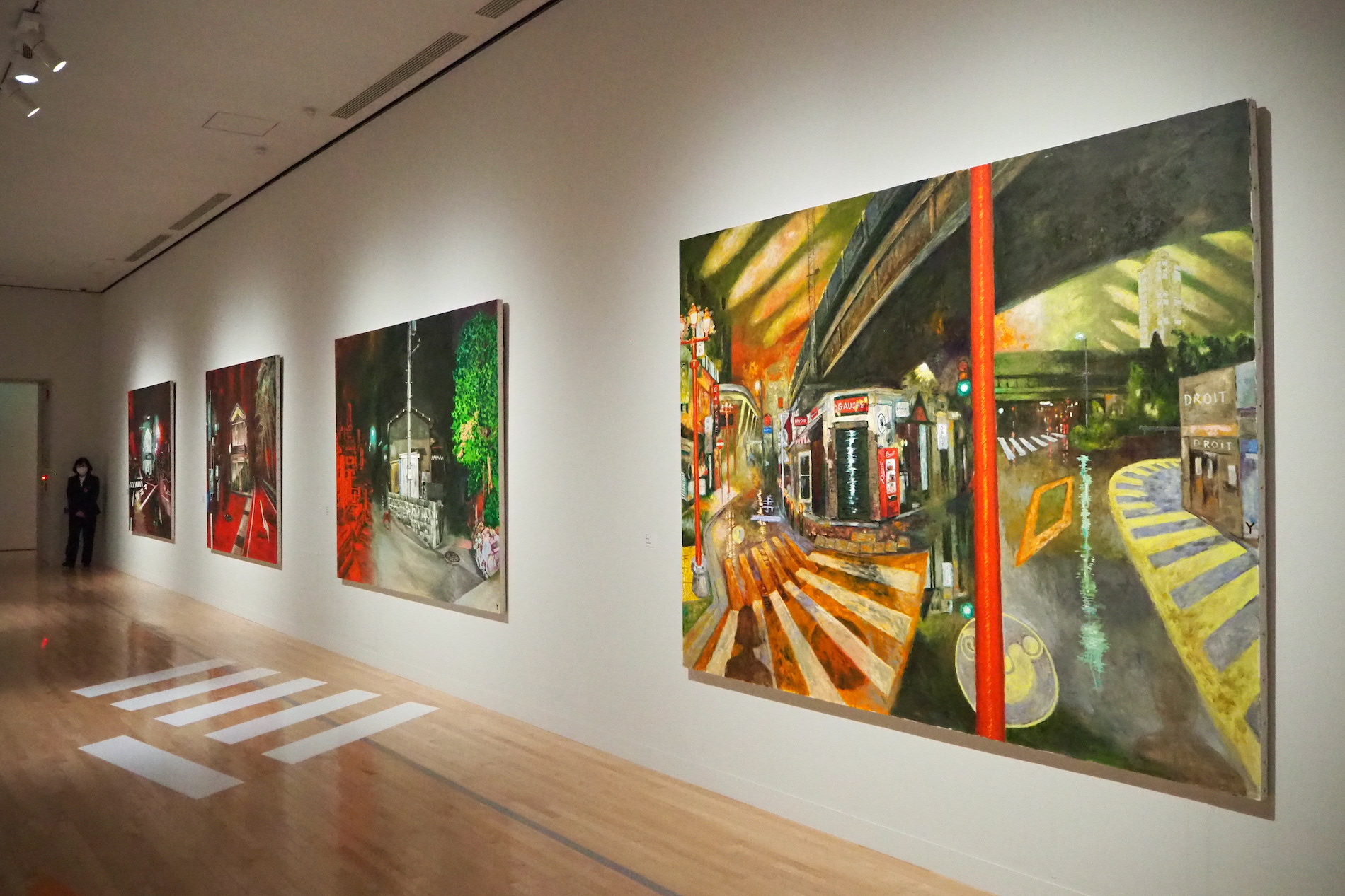 Y字路にて のエリア 子供の頃に通ったY字路の場所は、後に見ると見知らぬ景色となっていたとのこと。Y字路のモチーフは、150点以上に及ぶ。