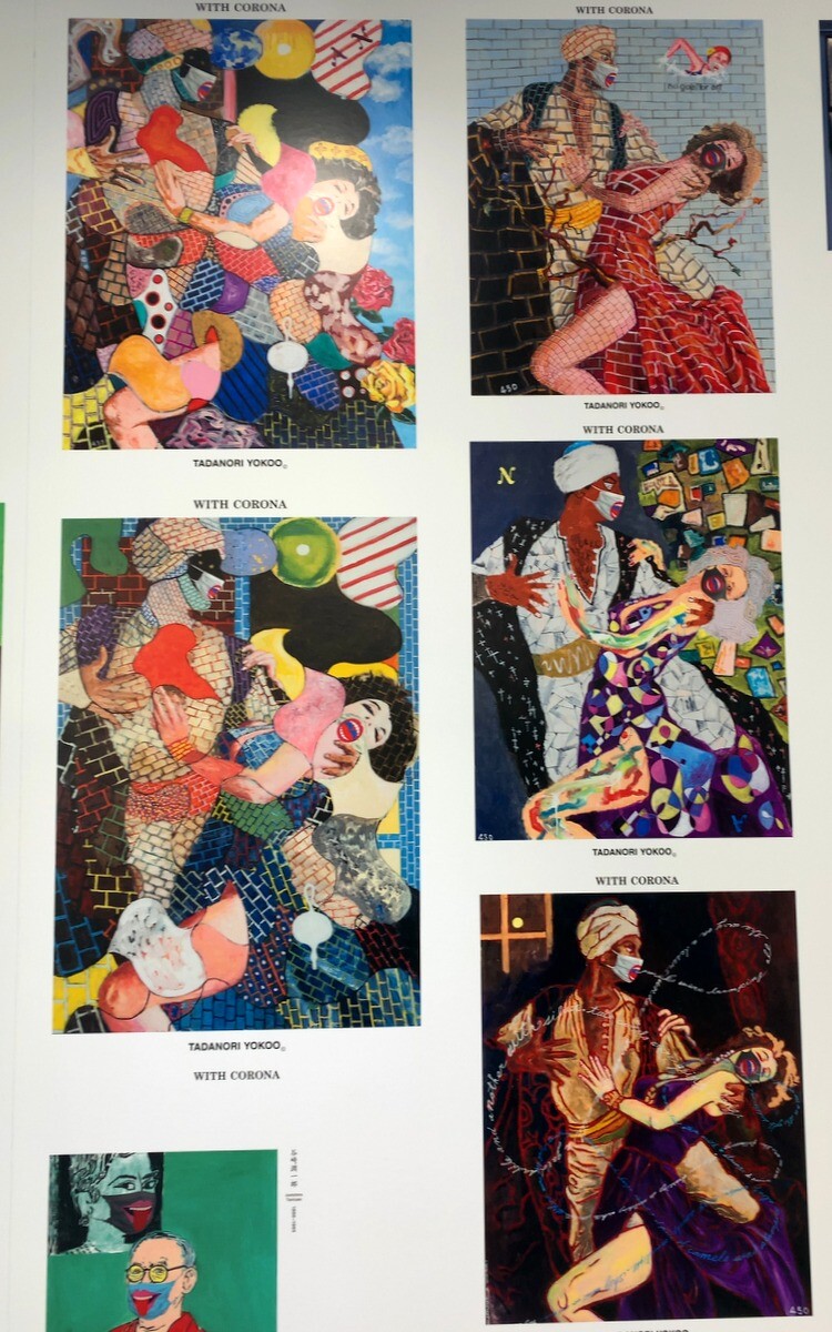 「愛のアラベスク」2012 クリムトの作品を思い出したのだが、良く良く見ると、ターバンをした黒い顔の人に抱かれている女性のようで、コロナ後にご自分の作品にマスクを付けた作品エリアでは、この作品の色々なバージョンを見ることが出来た。