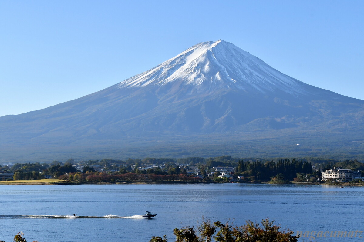 河口湖の紅葉は、一昨年は11月半ばに見に来ていたので(その様子は こちら)未だ時期としては早いと思っていたのだが、それでも少しは色付いていた。