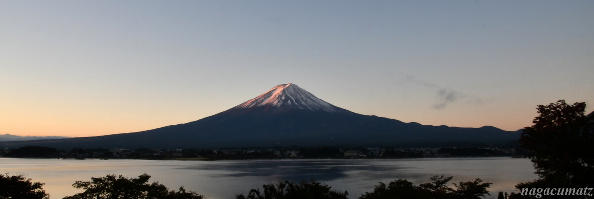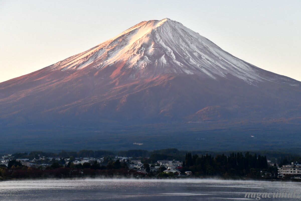 河口湖で迎えた朝。お部屋から、太陽が昇ってくるにしたがって刻々と表情が変わる富士山を楽しめた。