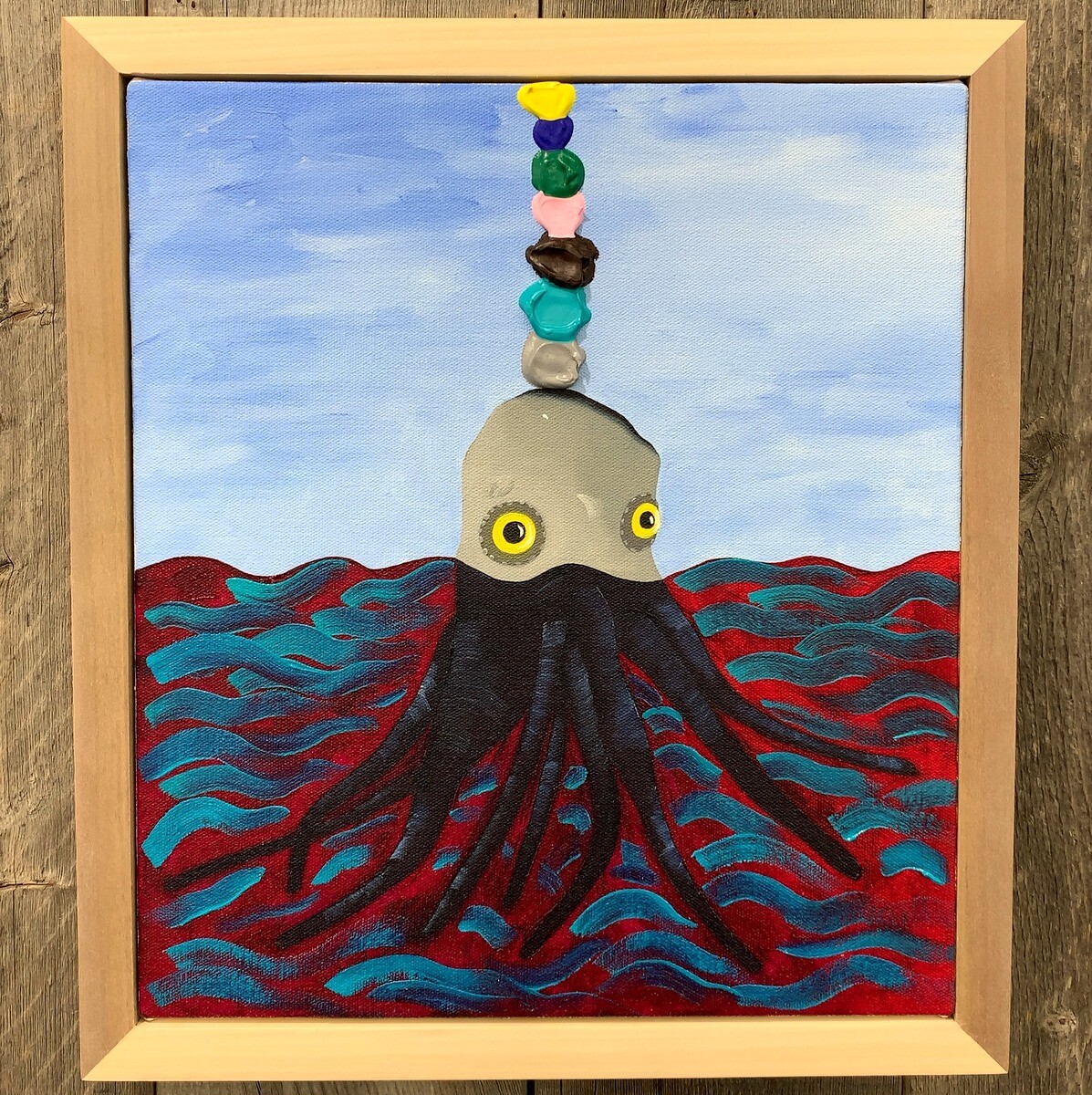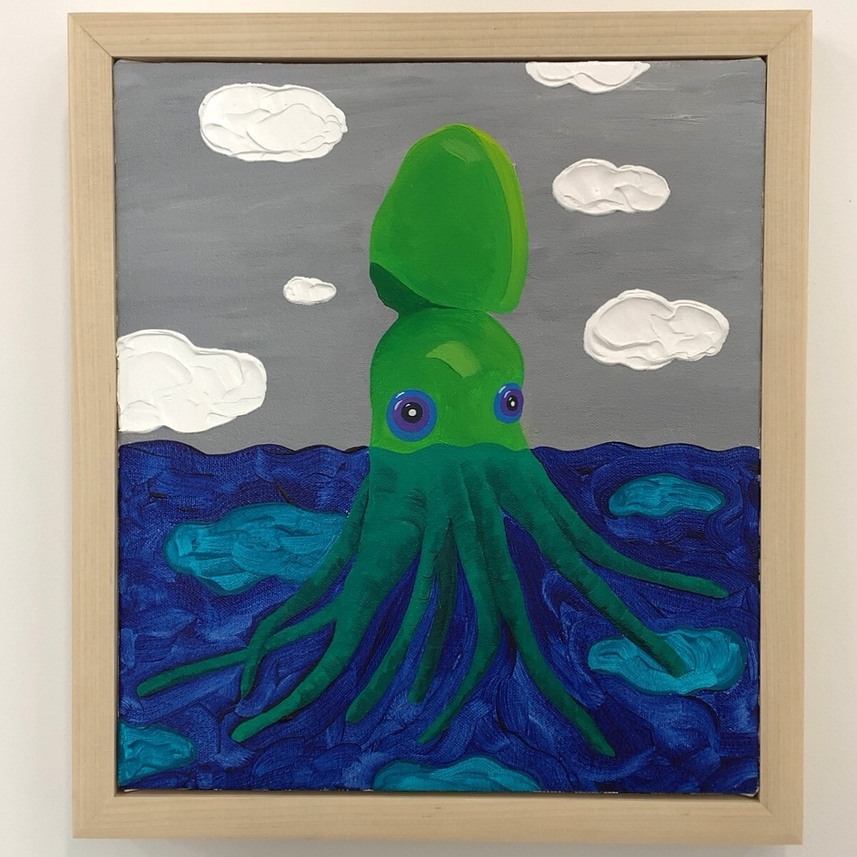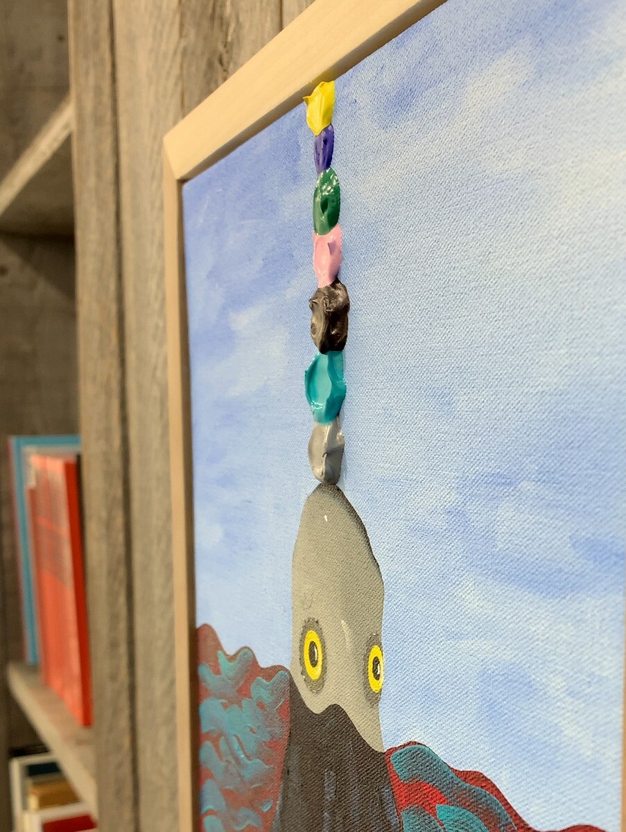 横から見ると、絵の具が盛り上がっているのが良くわかる。