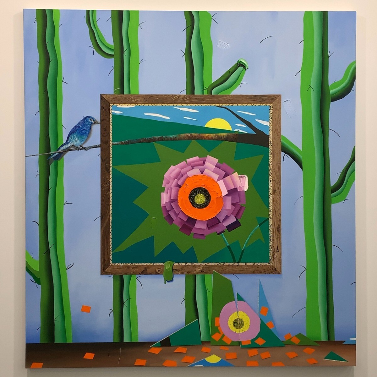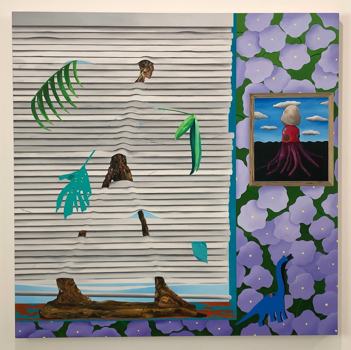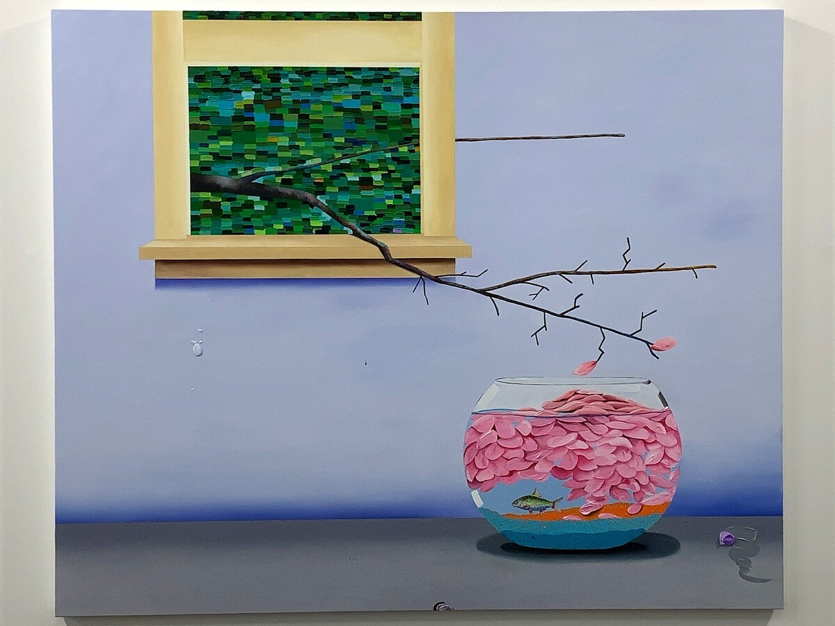 シュルレアリスムやパターン・アンド・デコレーション、キュビズムなどの歴史的芸術運動を参照すると同時に、作家個人の経験からもインスピレーションを得ているとのこと。平坦でグラフィックなタッチから素材感豊かなインパストまで幅広い技法を併用することで、油絵の可能性を探求しているのだそう。