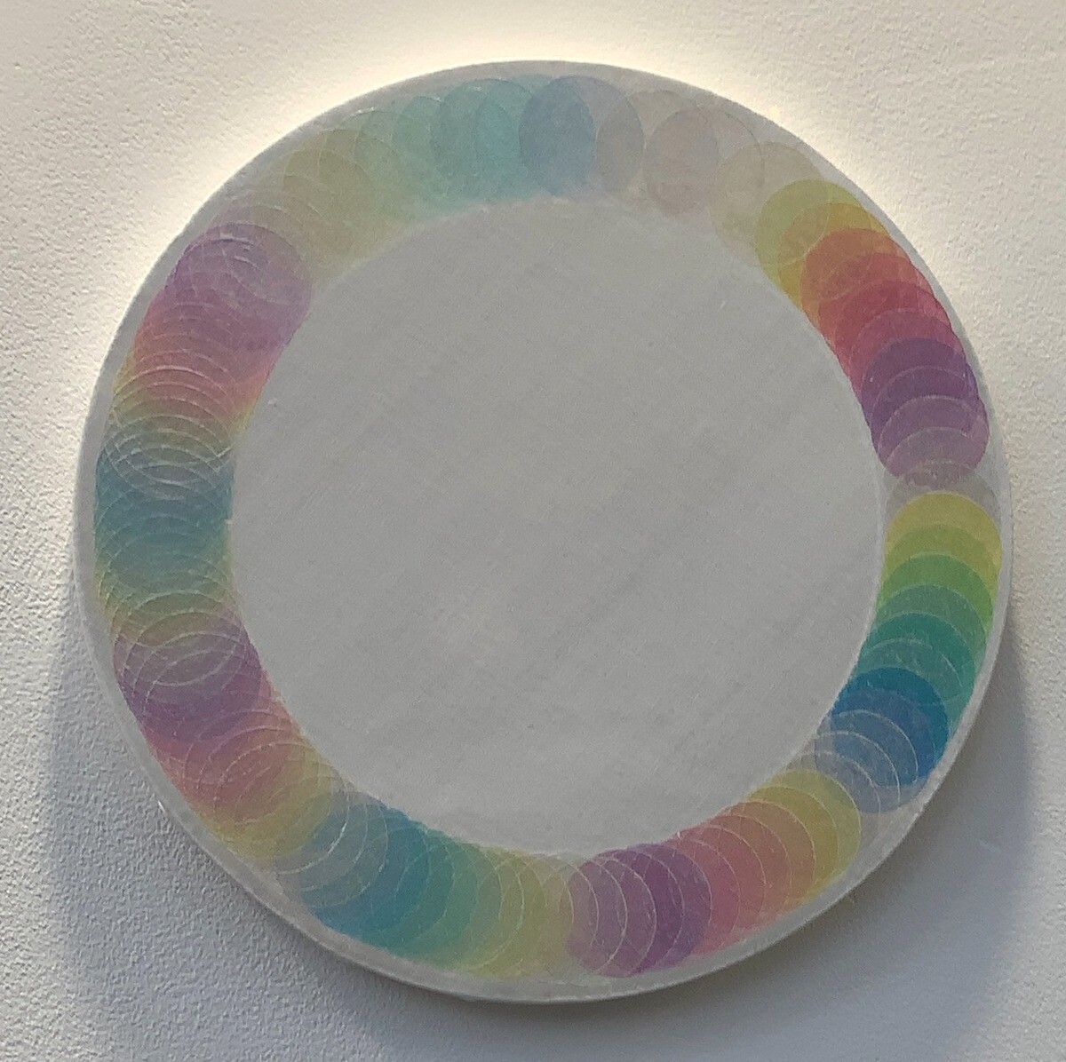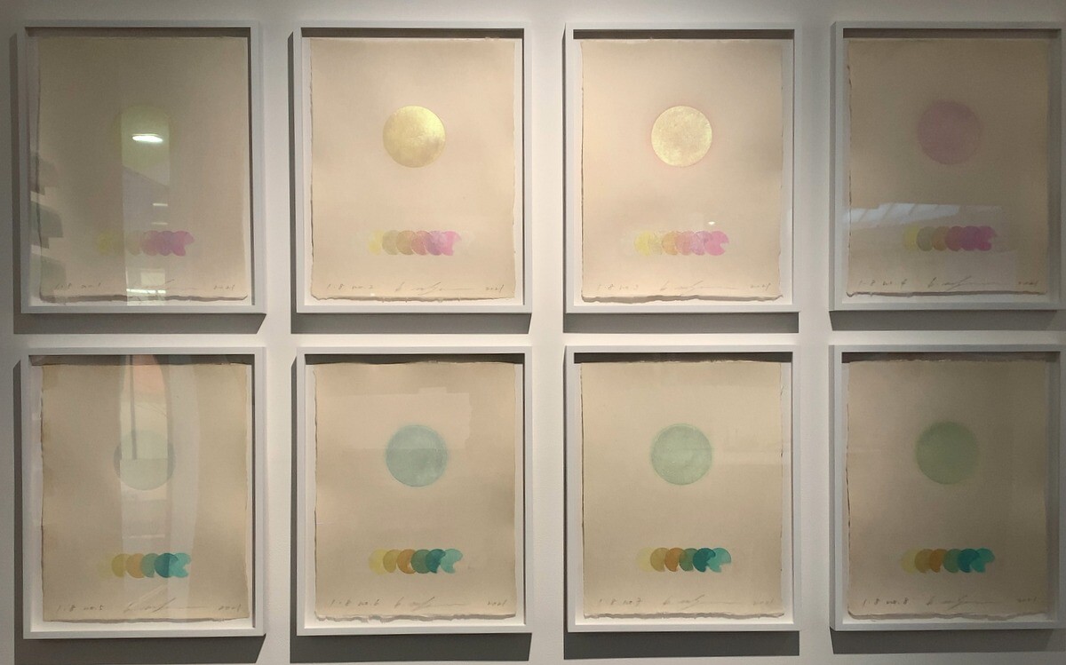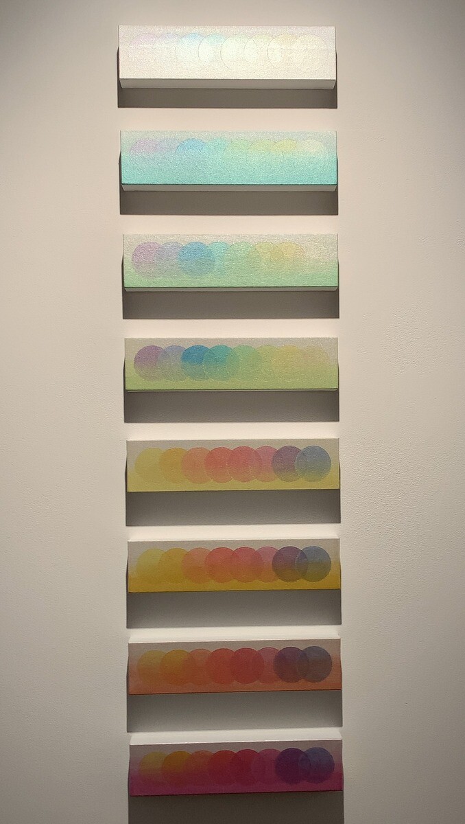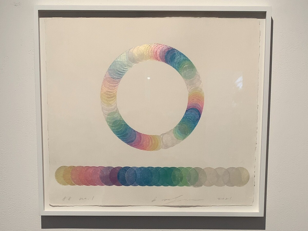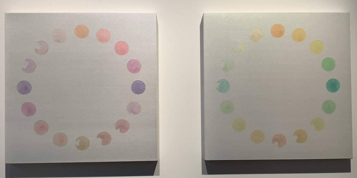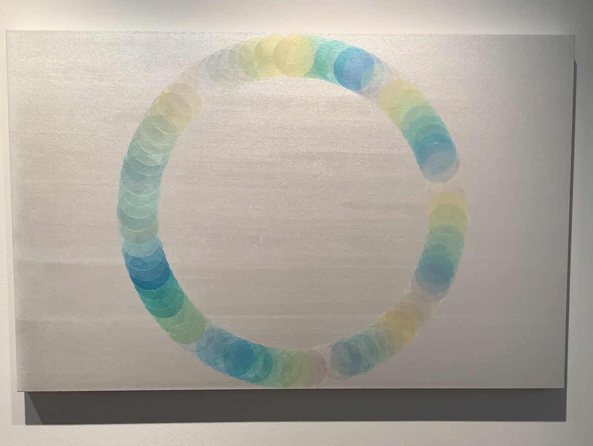 アクリルメディウムとキャンバスを素材とした絵画作品に集中的に取り組んでおられ、色そのものを素材ととらえ、キャンバスに染み込ませるようにして様々な色を幾層にも重ねて完成させるミニマルな絵画作品となっている。