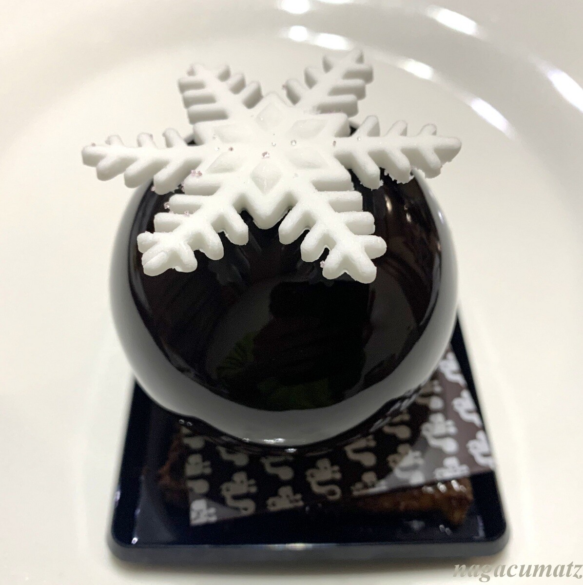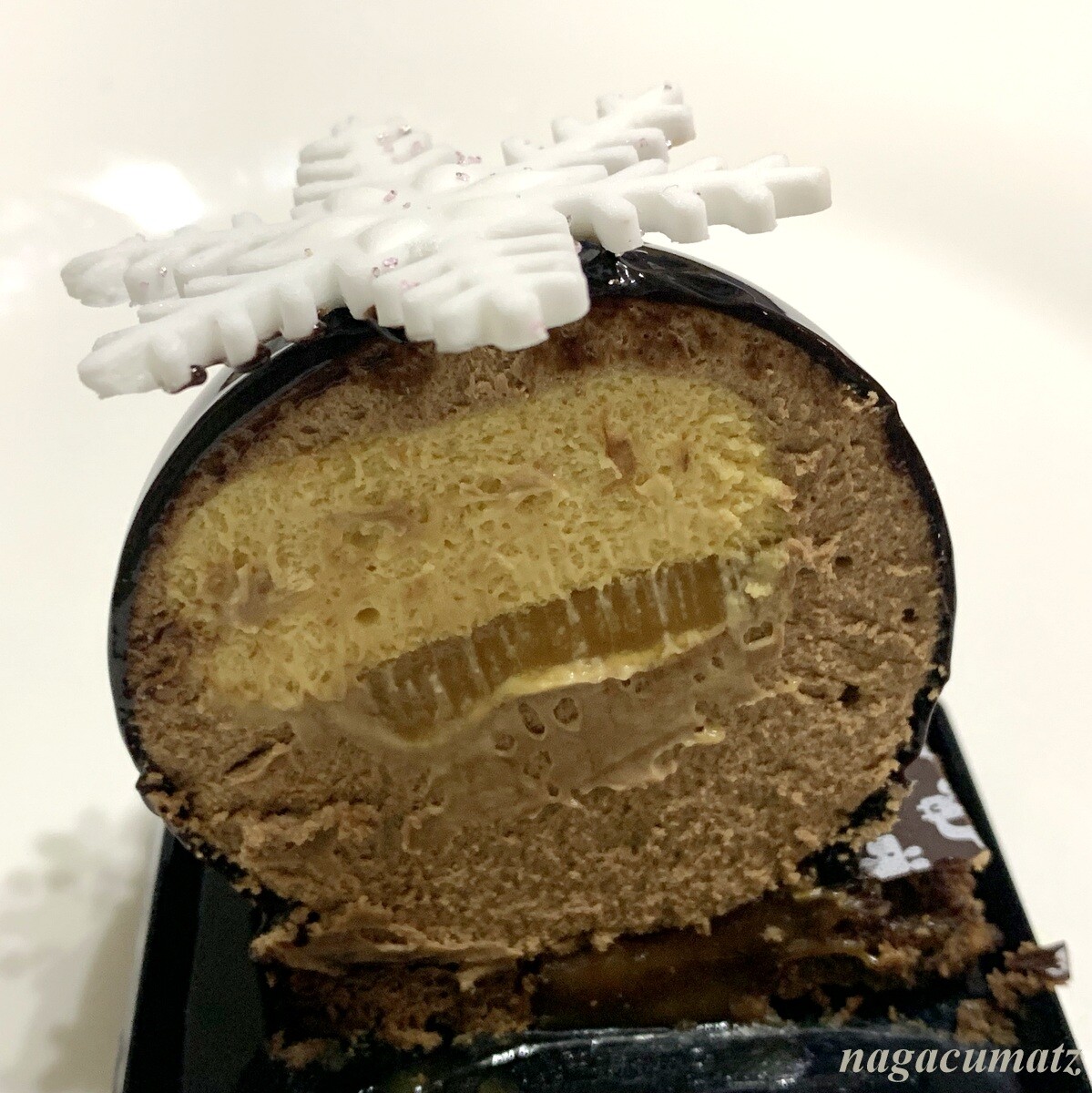 生キャラメルがチョコレートムースの中と、下の台の中に入っているのだが、その生キャラメルすら2種類で下の方が濃い色の塩キャラメルになっている。