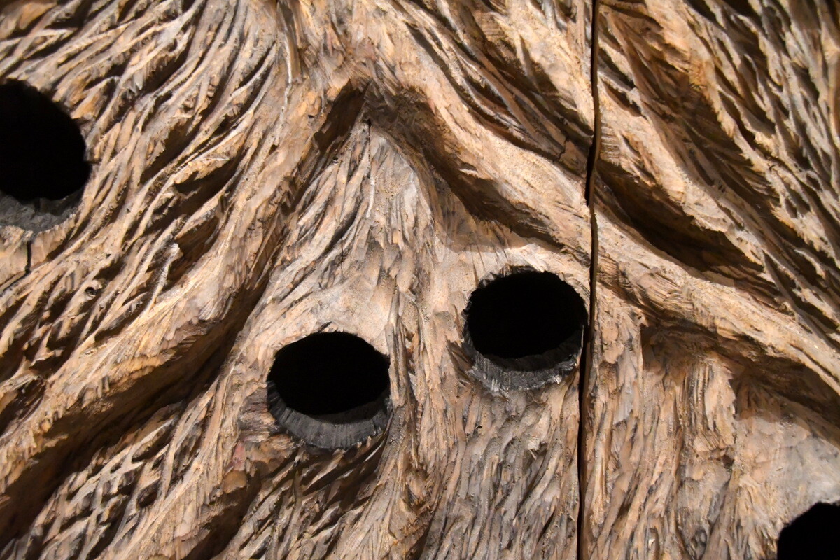 戸谷氏は、チェーンソーで木を彫り刻む彫刻家。
