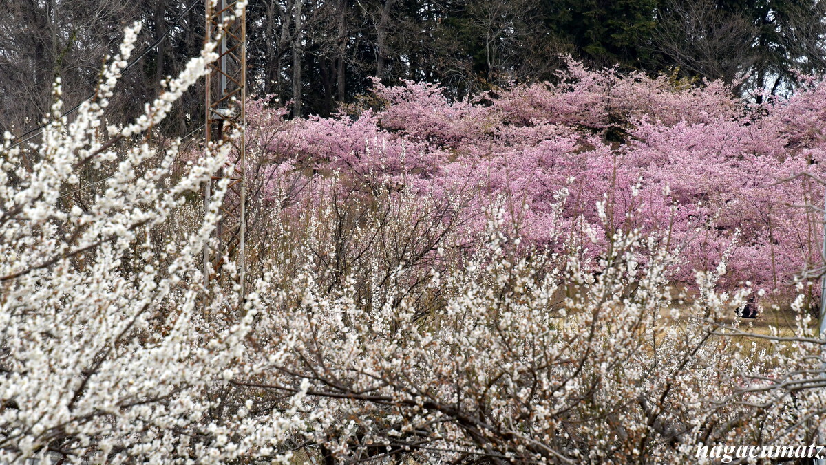 河津桜と白梅のコラボも