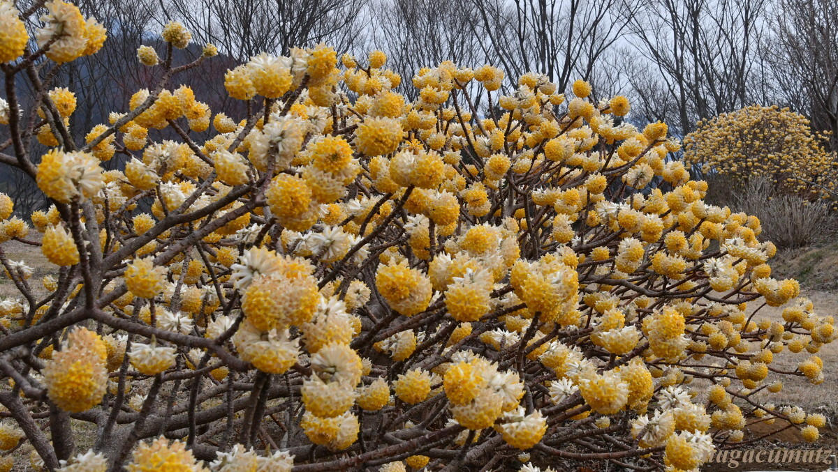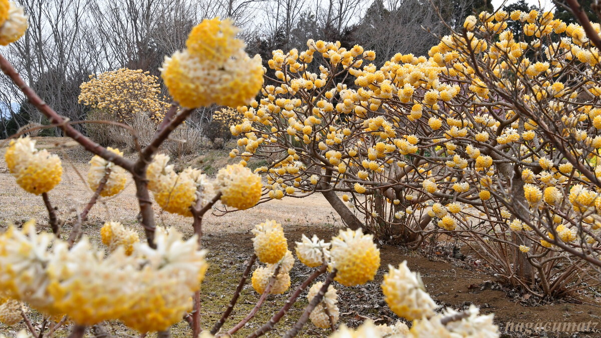 偶然だったのだが、すぐそばではミツマタが満開となっていた。ミツマタの花を見たことはあっても、ここまで見事に満開になっているのを見るのは初めてだったので、ラッキーだった。
