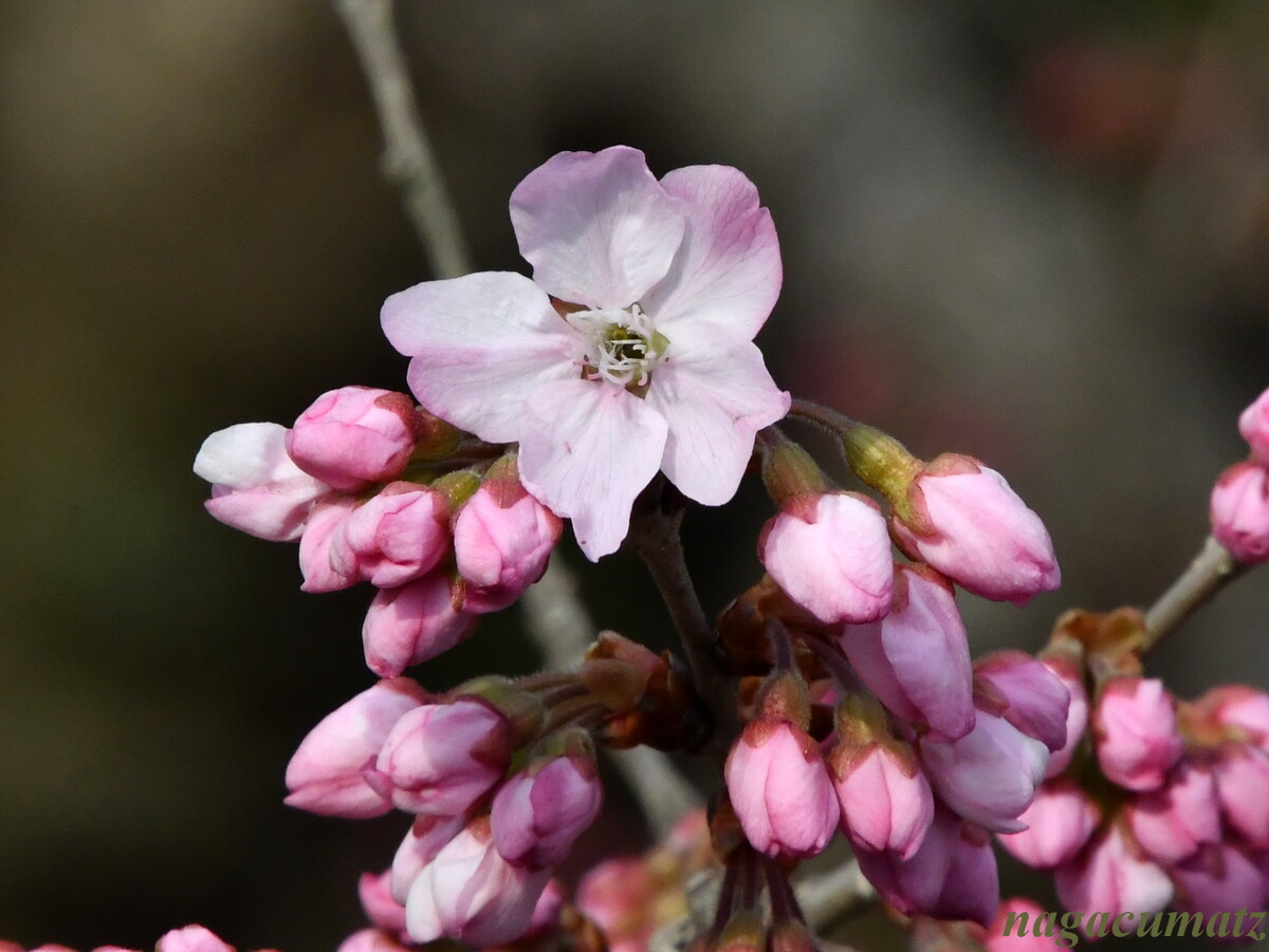 近くの一の堰ハラネの桜が、未だ見頃には早いとは聞いていたが、寄ってみた。一の堰ハラネの桜とは、「春めき桜」と言われるもので、寒緋桜と支那実桜の交雑から出来た桜とのこと。機会があれば、是非満開の見頃の時期に見に来たいもの。
