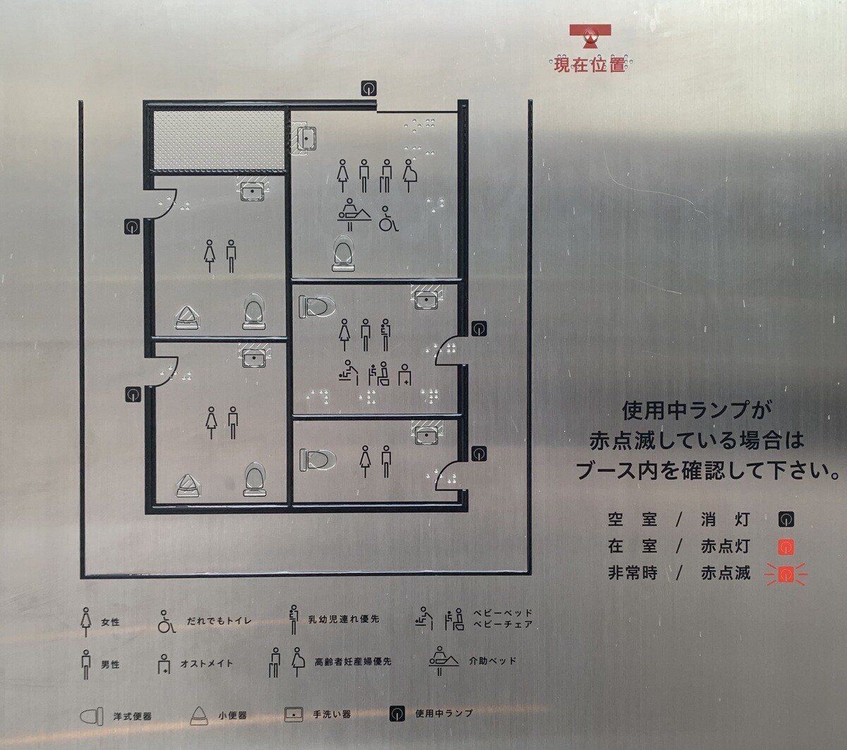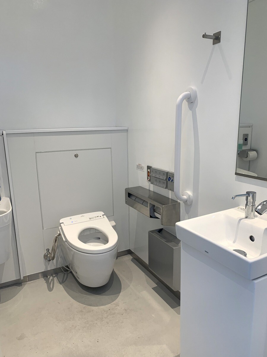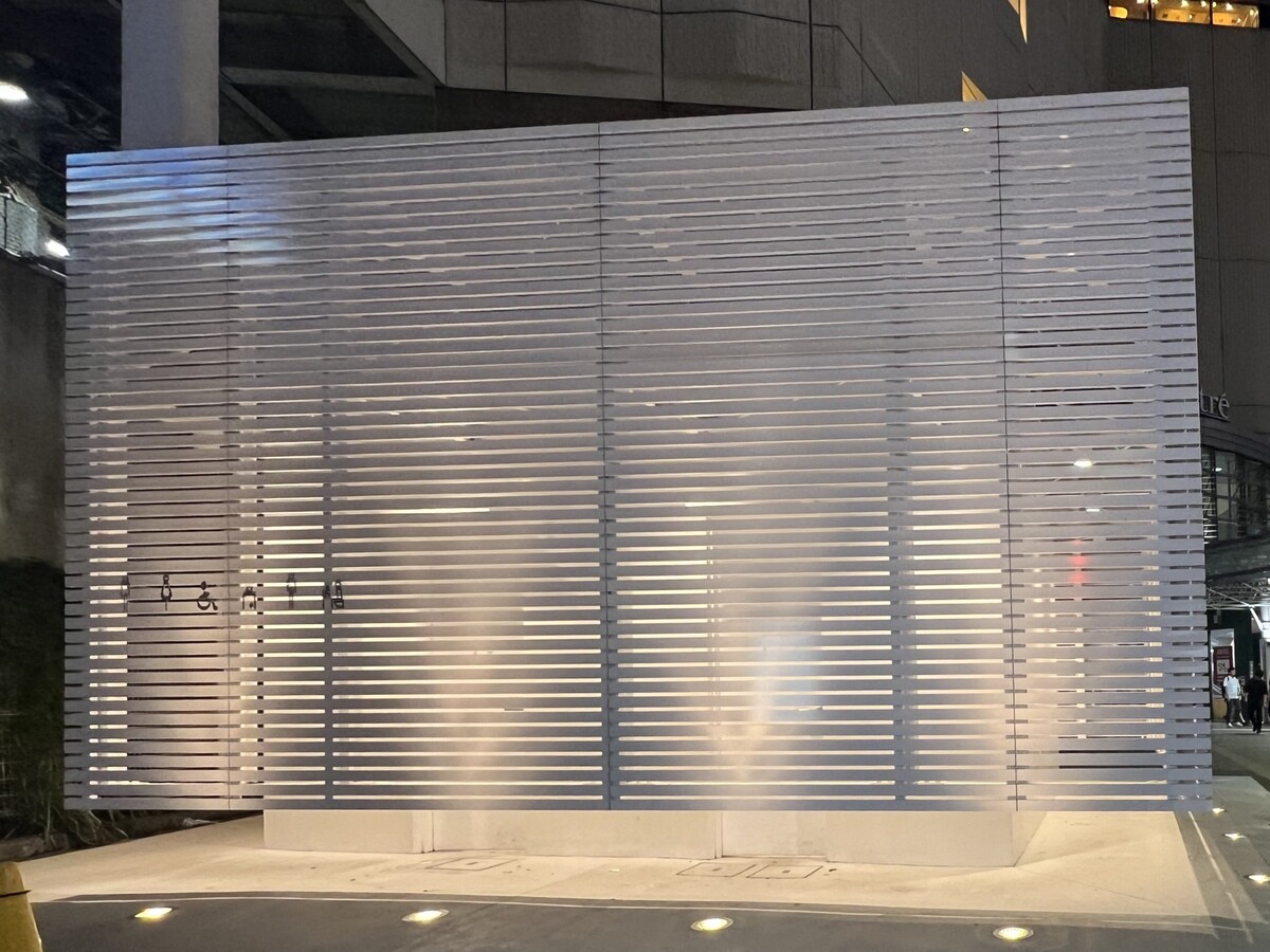恵比寿駅の人通りがとてもある駅の横でもあり交番の隣にある公衆トイレは、佐藤可士和氏による。17カ所のトイレ全てに使われているトイレマークは全て佐藤氏によるデザインでもある。