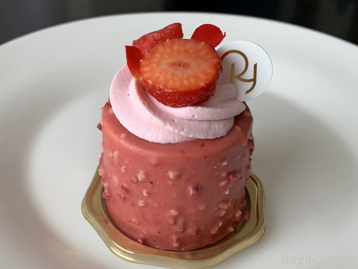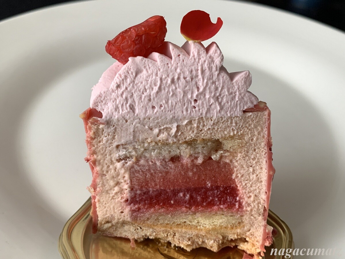 レヴリー 580円 フリュイルージュのムースが入っているが、ほんのりバラの香りがするようになっている。何層にもなっていて周りのチョコレートも美味しいのだが、もう少しバラの香りがあって欲しかったかな。