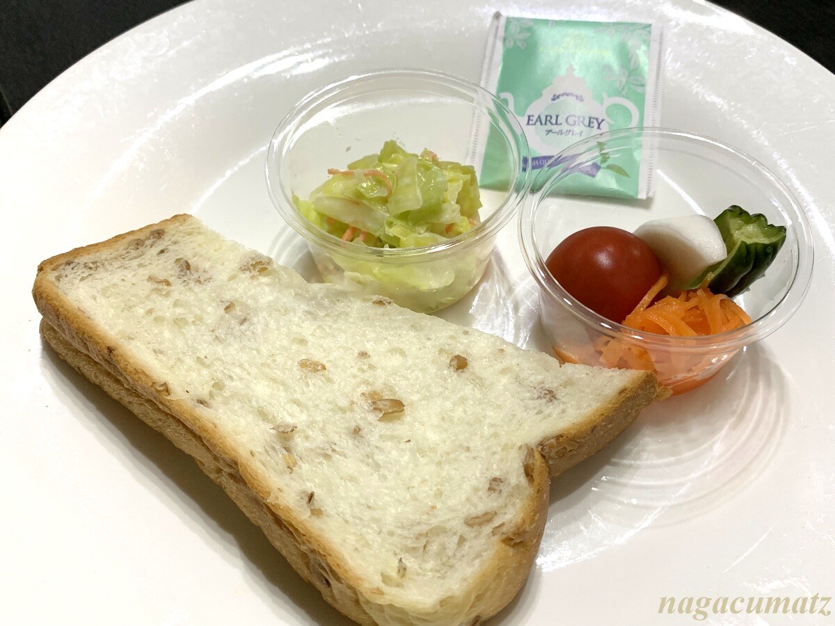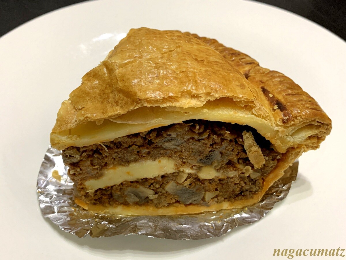 1ピースが結構大きく、挽肉がたっぷり。パン、コールスロー、プチトマトやピクルスなど野菜、紅茶が付く。