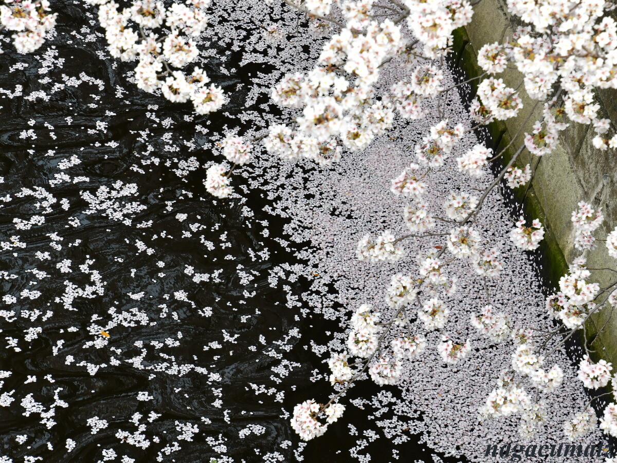 夕方に中目黒に戻ってくると、花吹雪となっていて、花筏も見ることが出来た。