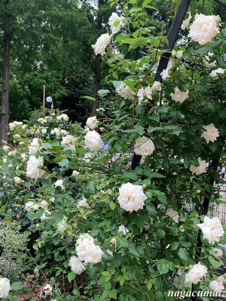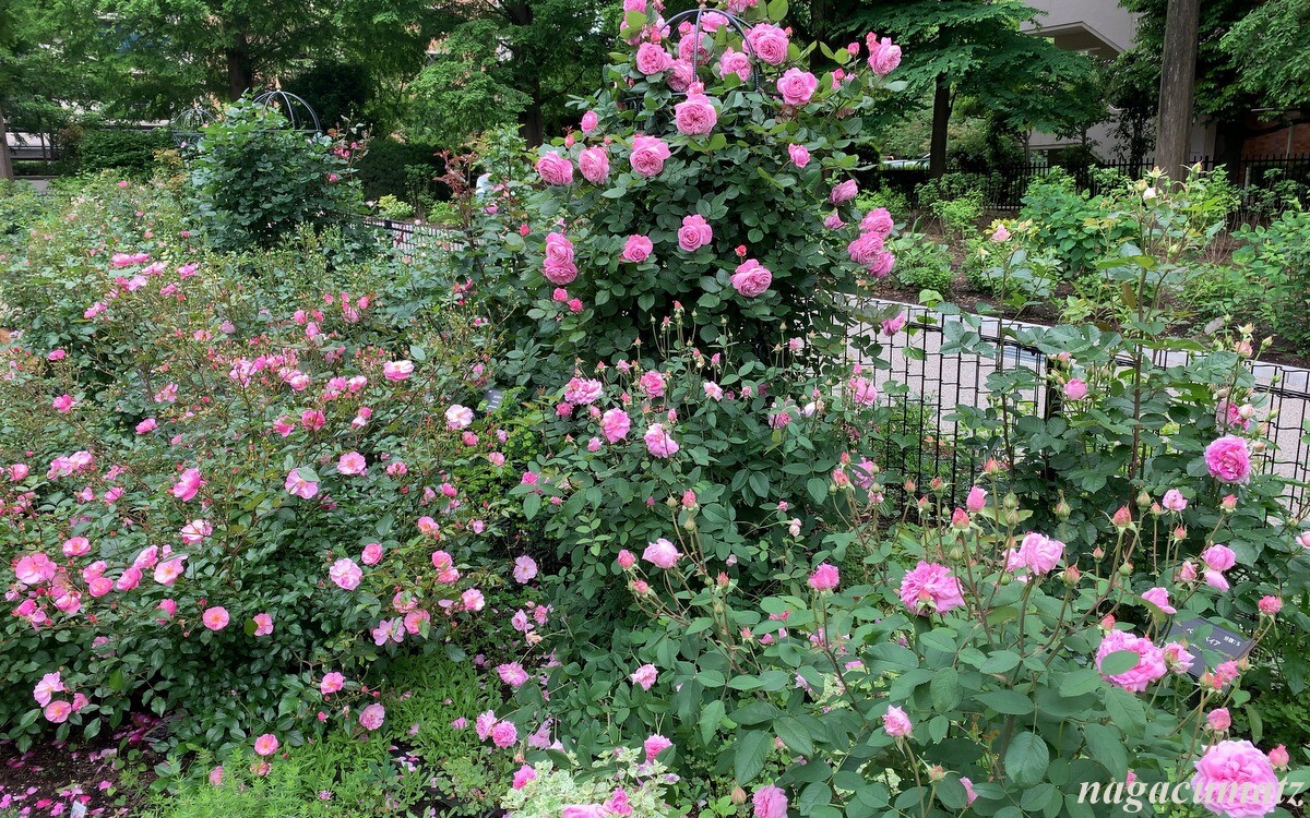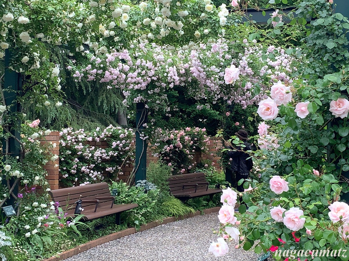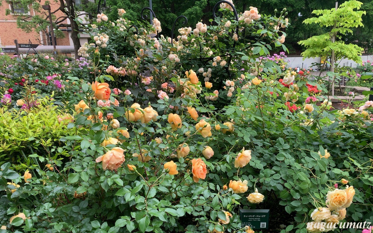 「四季の香」と言う品種のバラ。育種家の方が、2021年にこのローズガーデン拡張を記念して提供されたバラなのだそう。春から秋まで咲き続ける四季咲きで、香りの強さは上から2つめのランク。