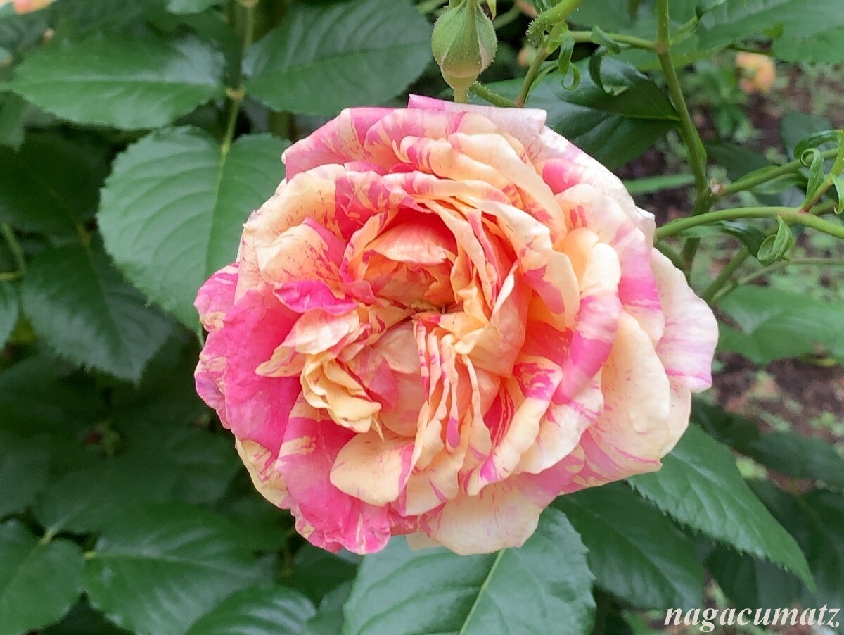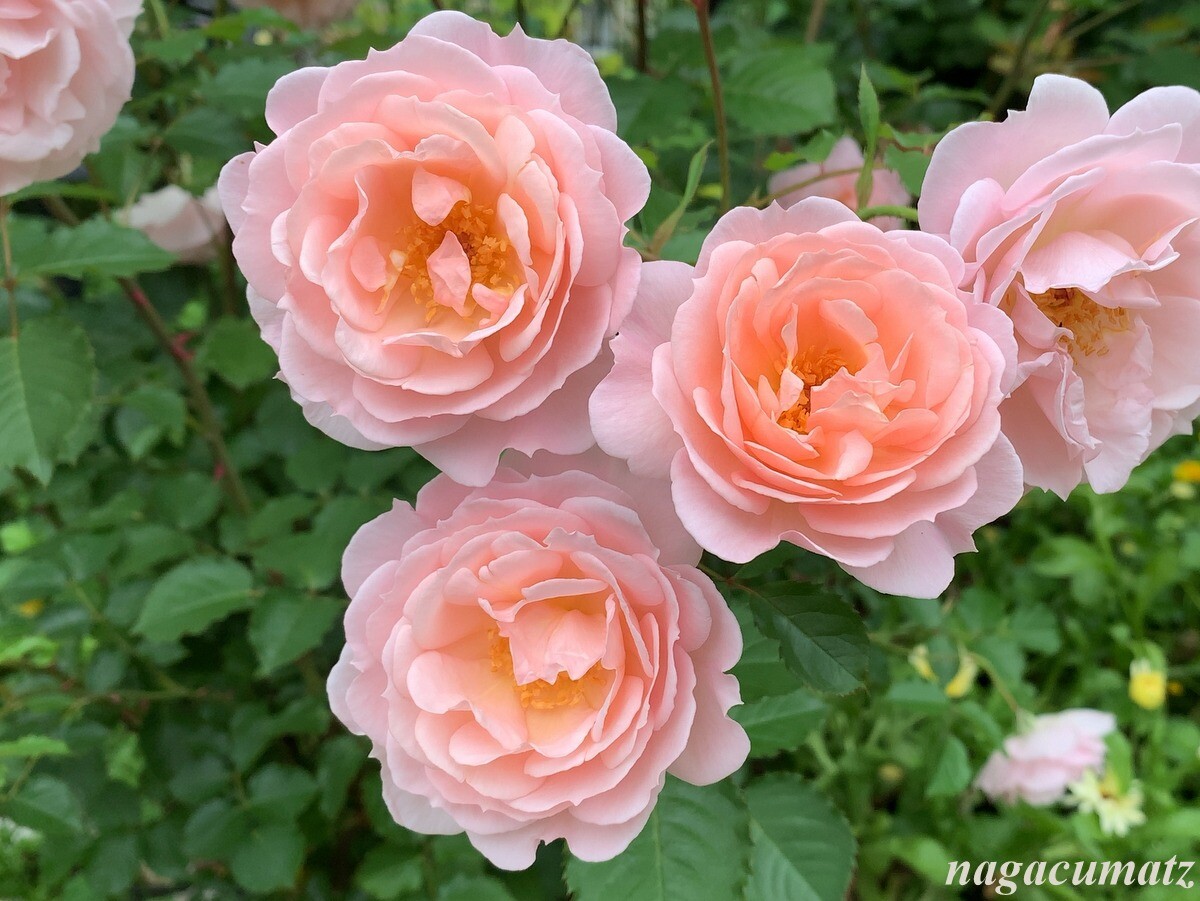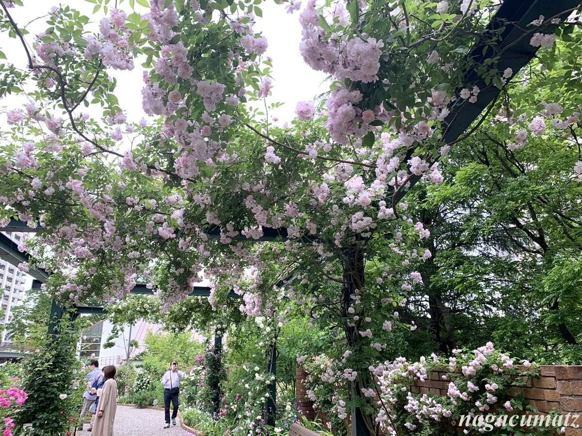 「四季の香」と言う品種のバラ。育種家の方が、2021年にこのローズガーデン拡張を記念して提供されたバラなのだそう。春から秋まで咲き続ける四季咲きで、香りの強さは上から2つめのランク。