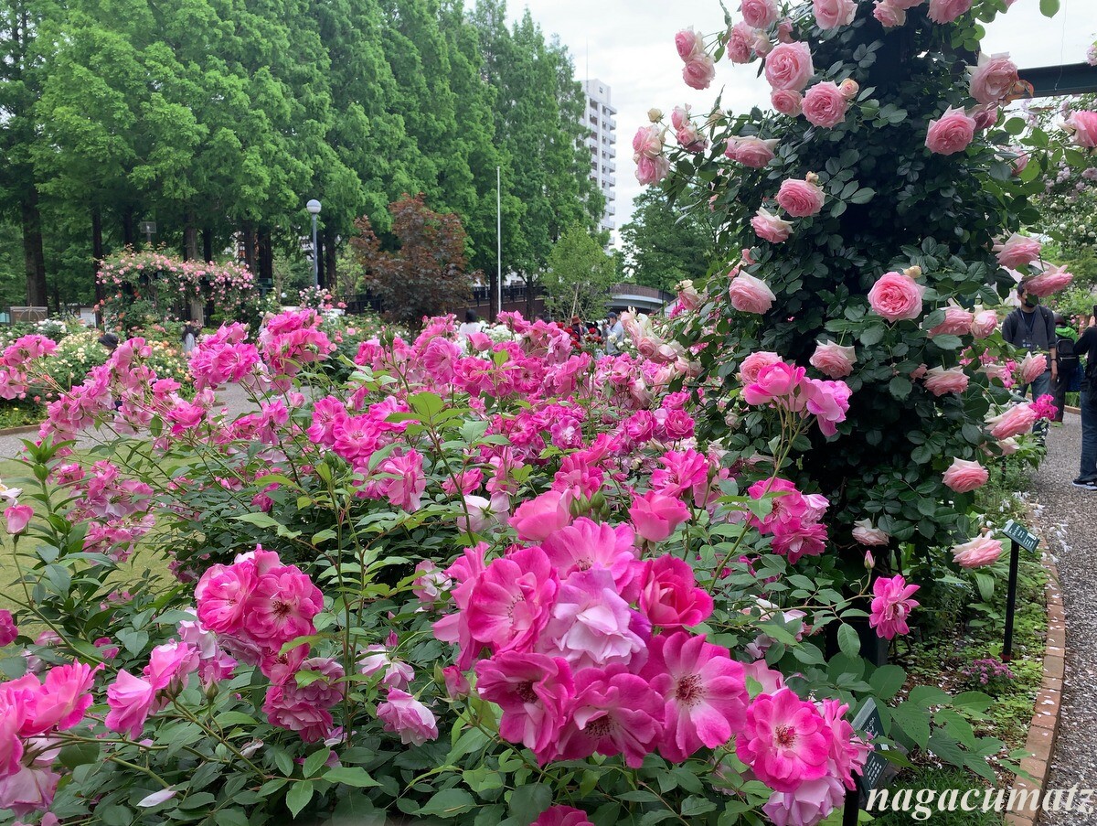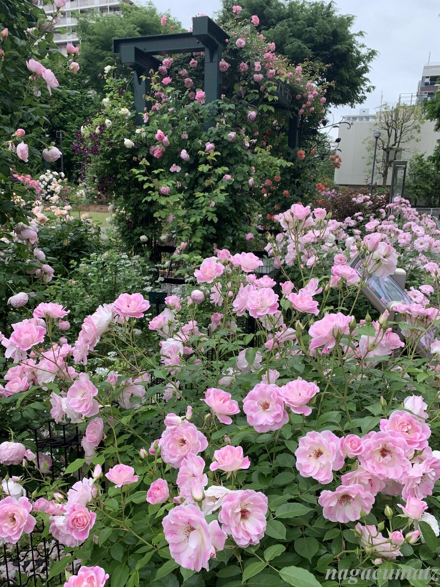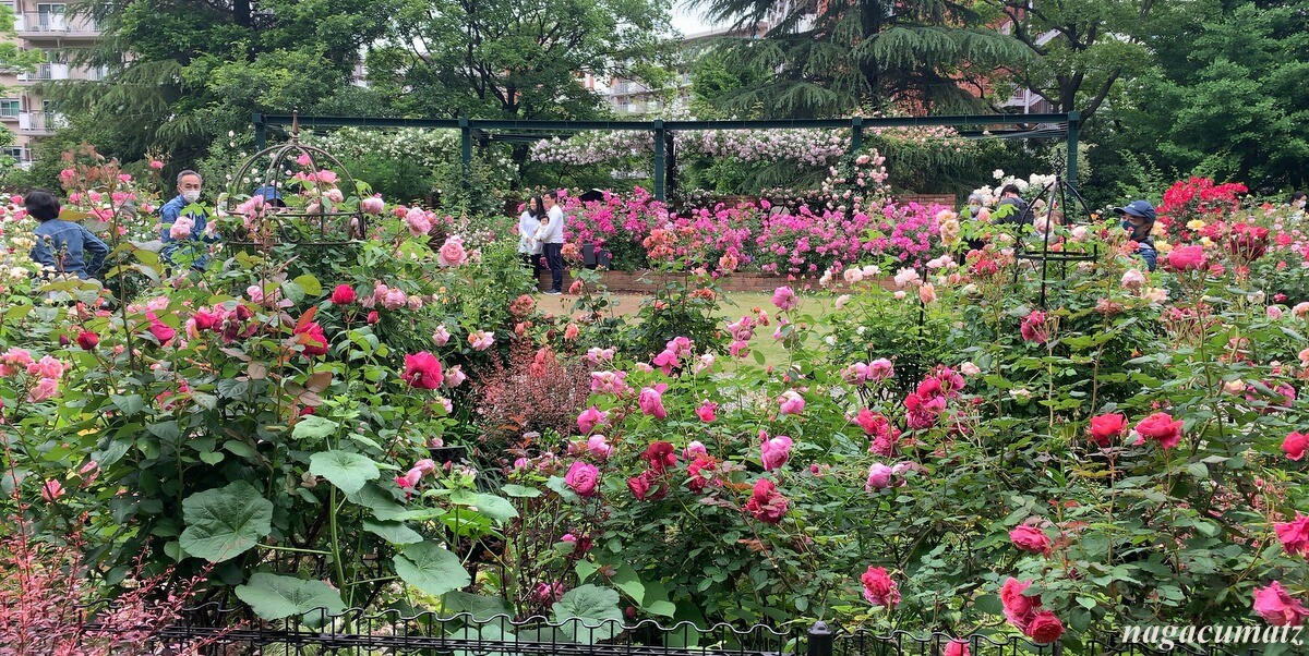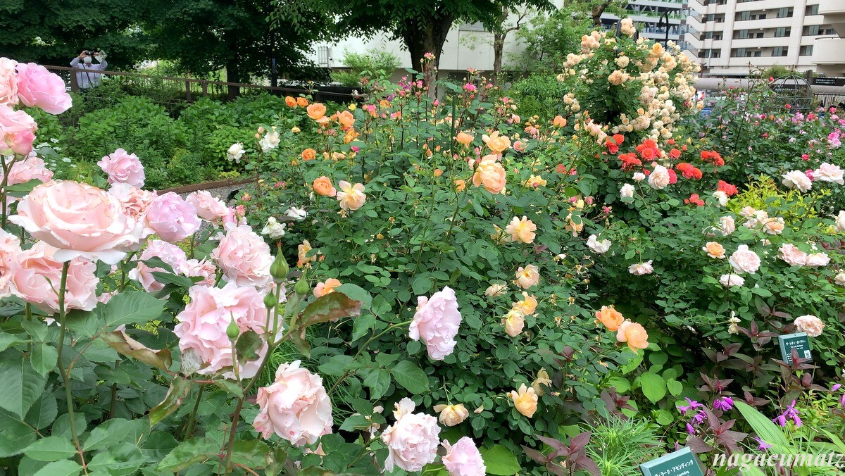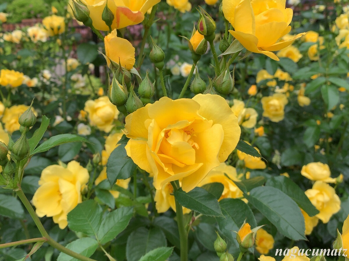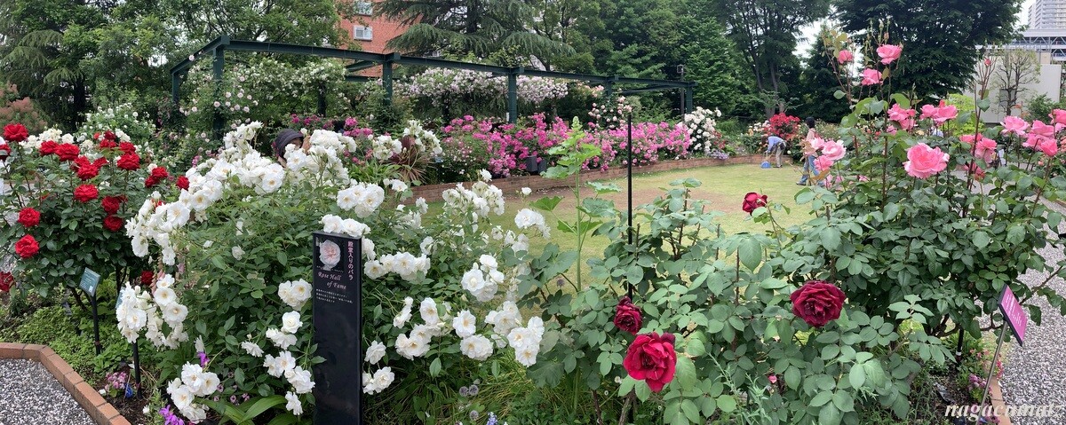 2016年に開園したバラ園には、約320品種 460株のバラがあるのだが、面白いのは、香りの違う 6種類のバラを分けて配置してあること。気温の低い朝に特に香りを良く放つのだそうだが、まさしくそんな朝だったこともあってか、公園の敷地の外でもバラの香りが漂ってくるぐらい。