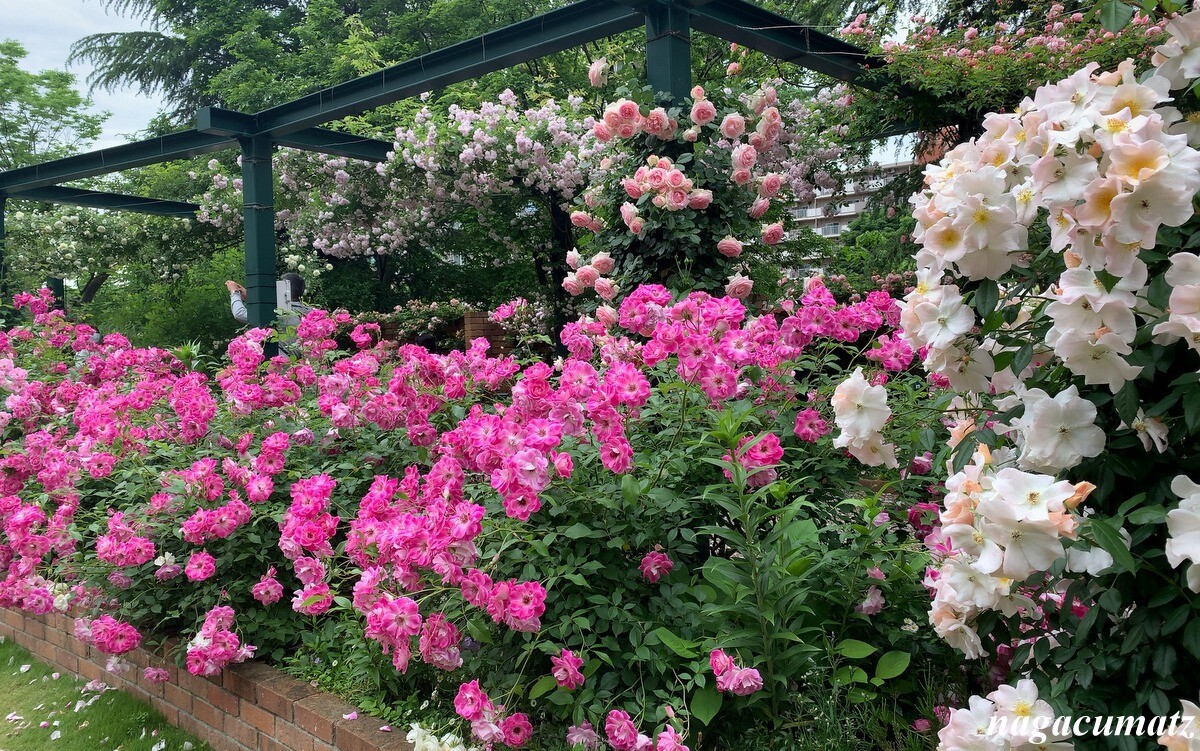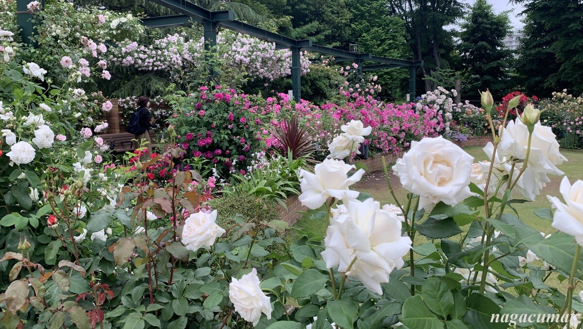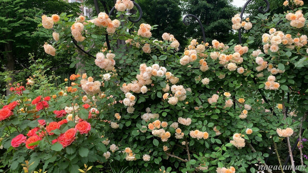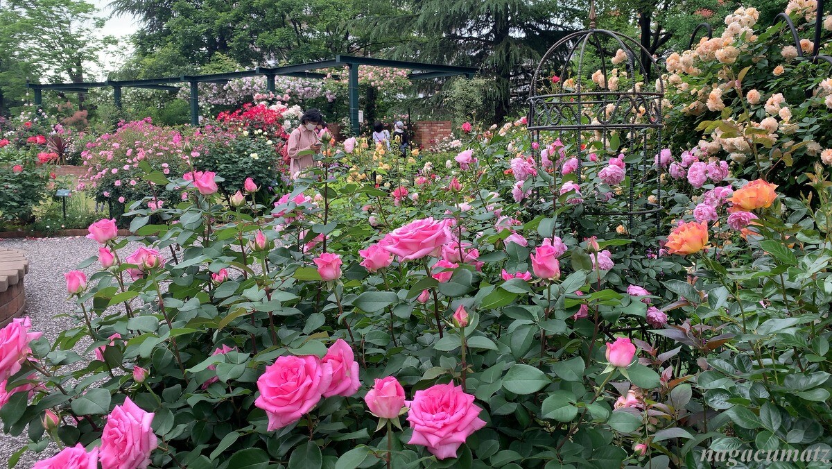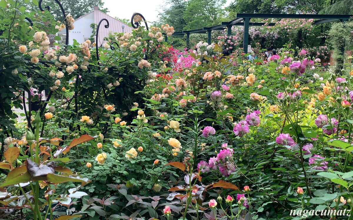 隣には、色彩のローズガーデンがあり、色ごとに配置されている。