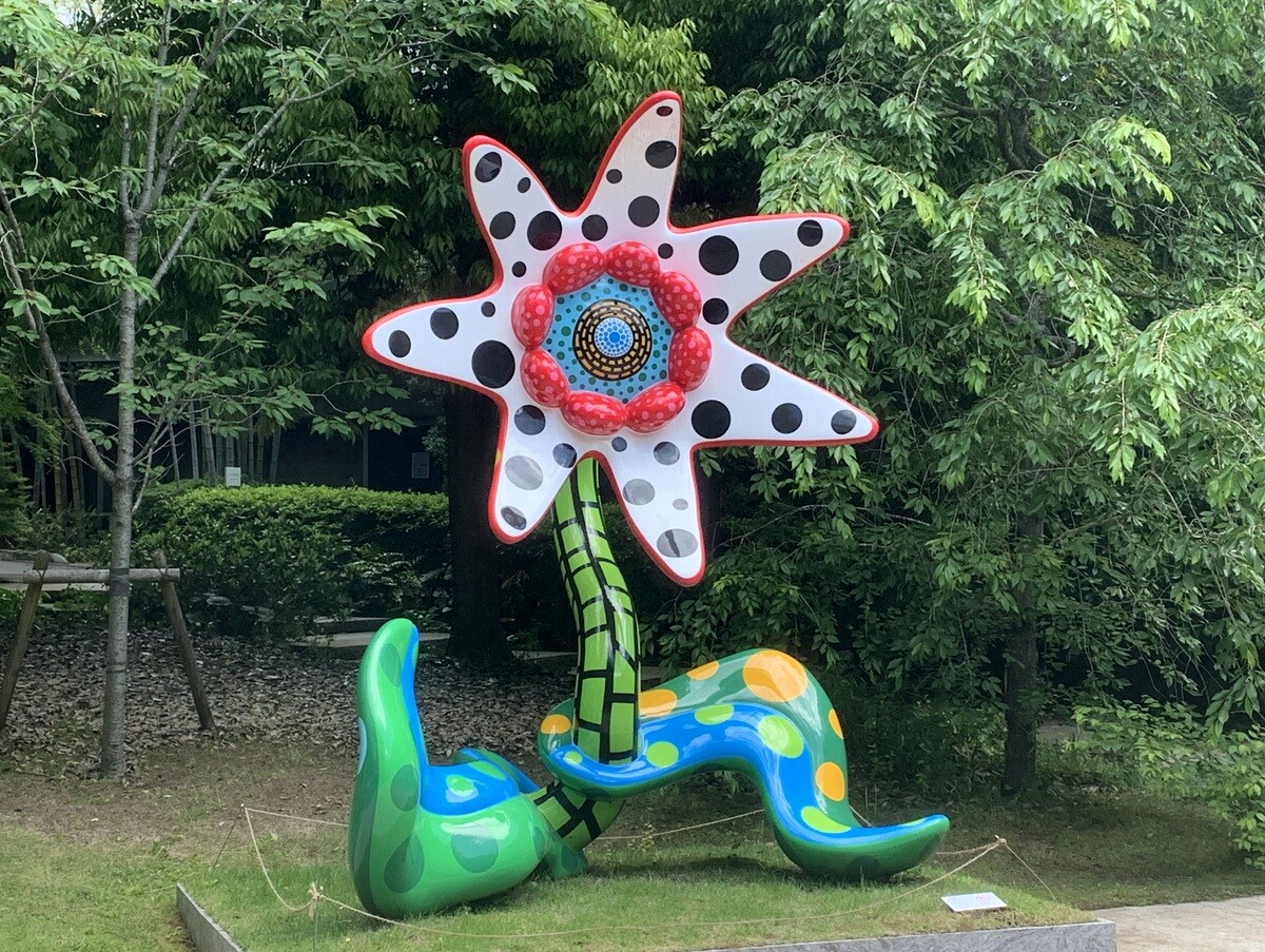 入口には、草間彌生氏の「明日咲く花」