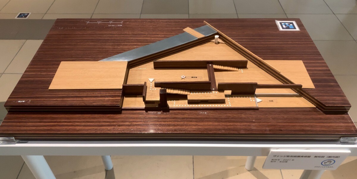 手で触れる地図として、クレマチスの丘や美術館全体の地図と、美術館の地図を見て触ることが出来る。