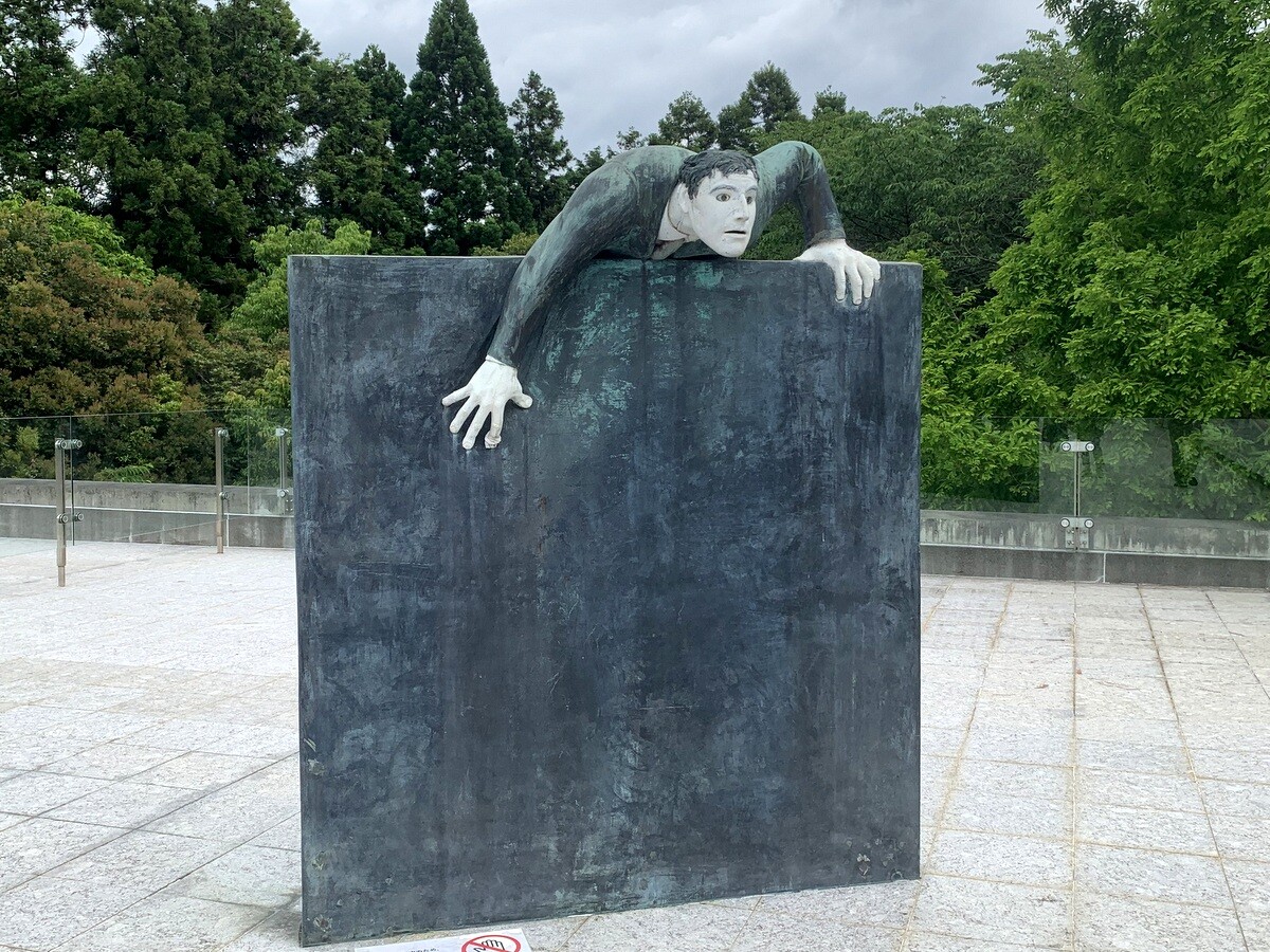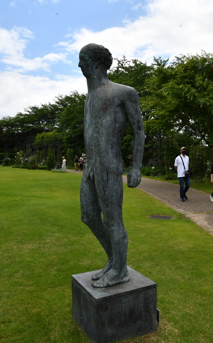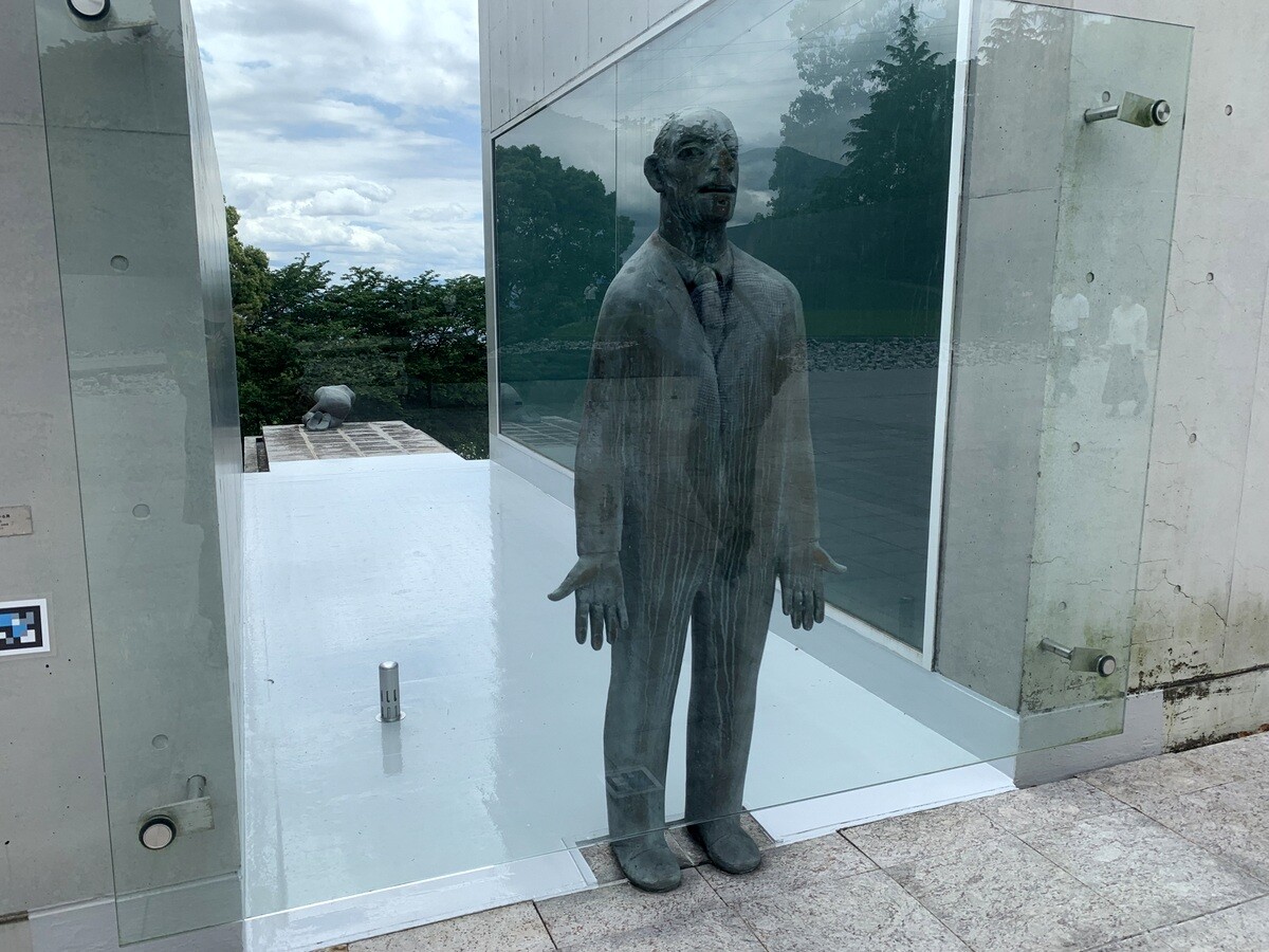 「立っている男」2001 ガラスに顔をべたっと付けているのが面白い。後ろの方にも作品がある。庭側から見られる。