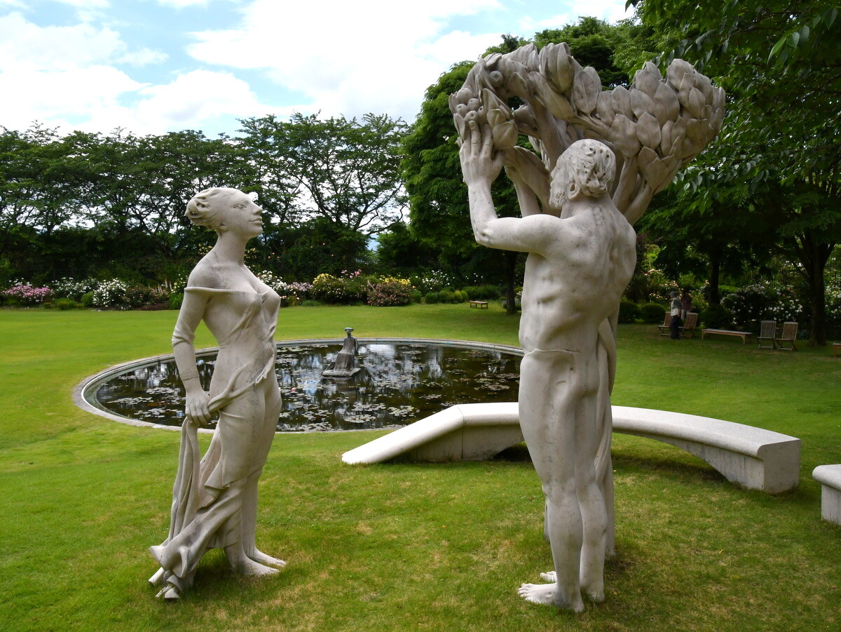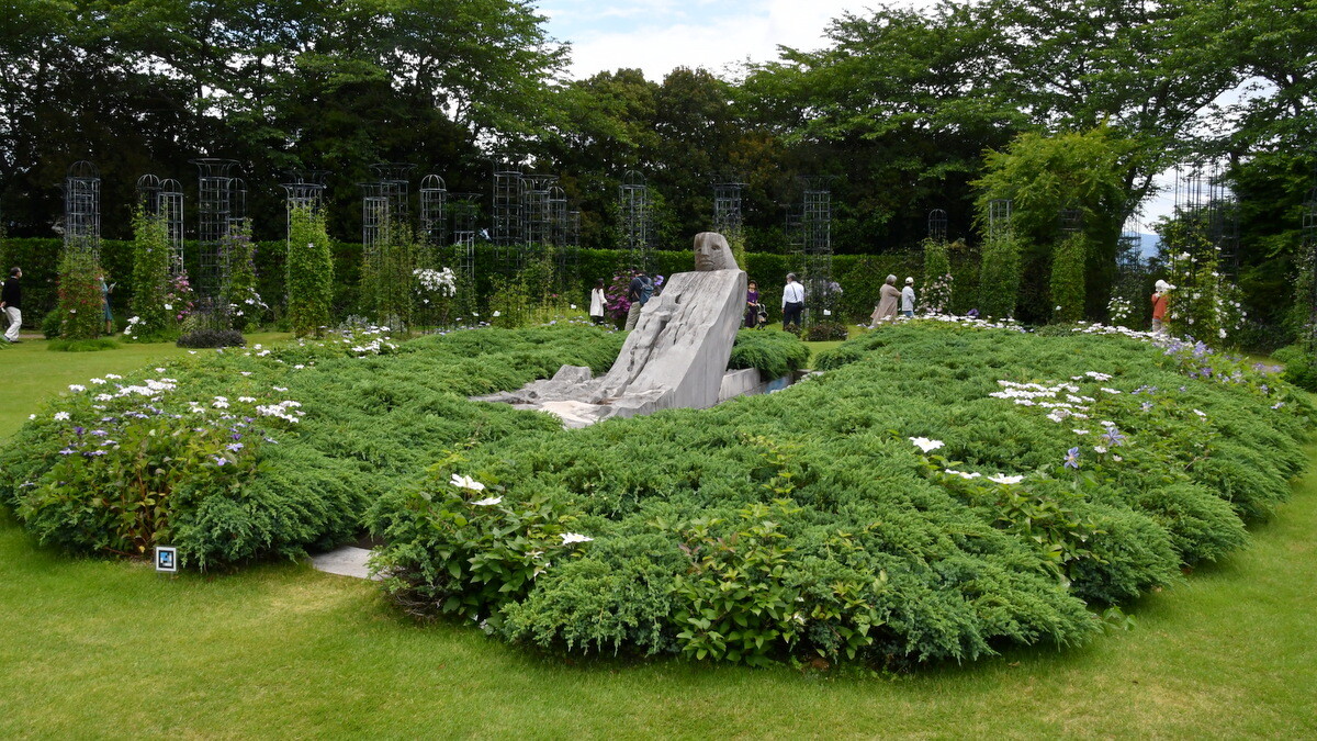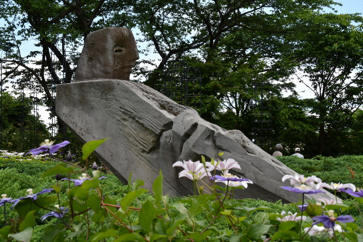 ヴァンジ彫刻庭園美術館の常設展。ちょうどクレマチスが綺麗だった。その様子や企画展の様子は: