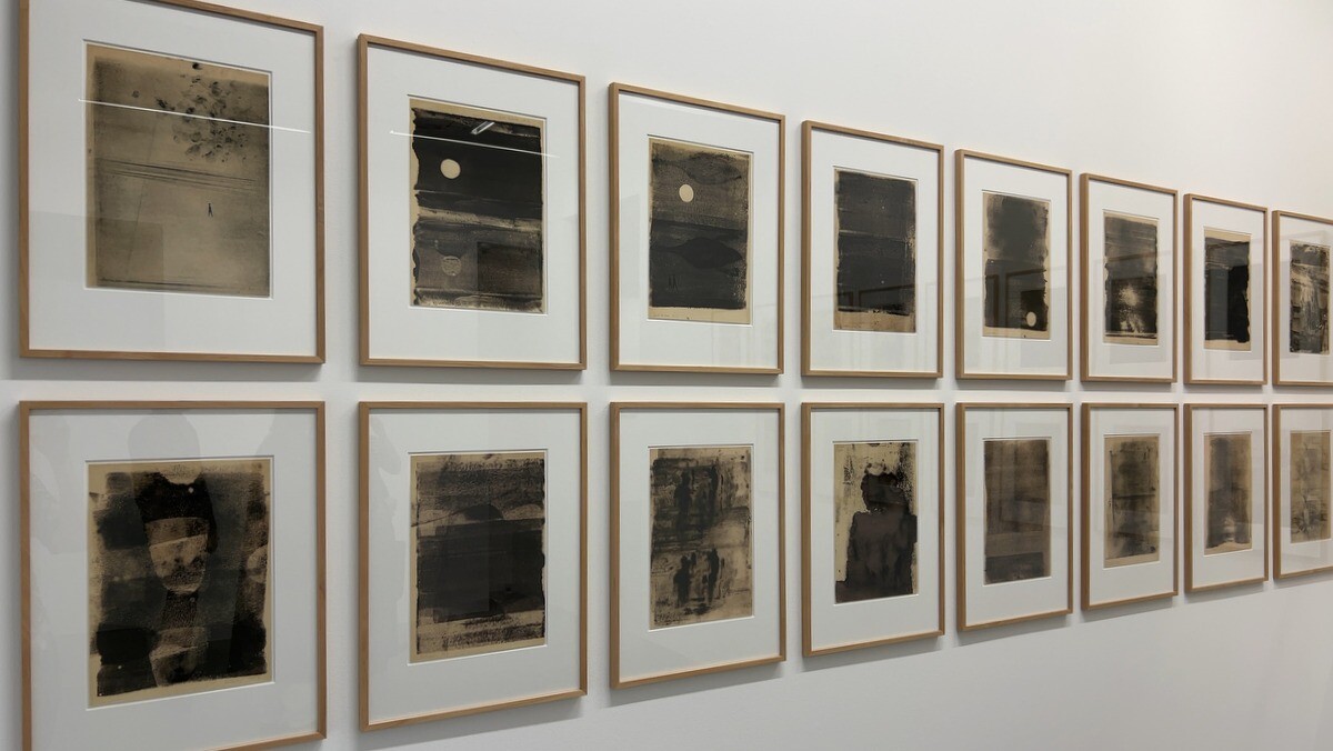 65年前に制作された31点組の版画作品《Elbe [Editions CR: 155]》のエディション版。1957年に25歳のリヒターがスケッチブックにゴムローラーを用いて描いた版画が元になったエディション作品で、ベルリンの壁崩壊前の1961年にドレスデンから西ドイツへと移住し、その際に友人に預けていたオリジナルの版画が、2012年に精密な写真撮影とインクジェットプリントとで再現され、正式なエディション作品となったのだそう。