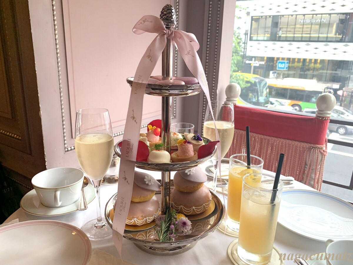ラデュレでアフタヌーンティーを。シャンパン付きのマダム・ド・ポンパドゥール 6380円を。