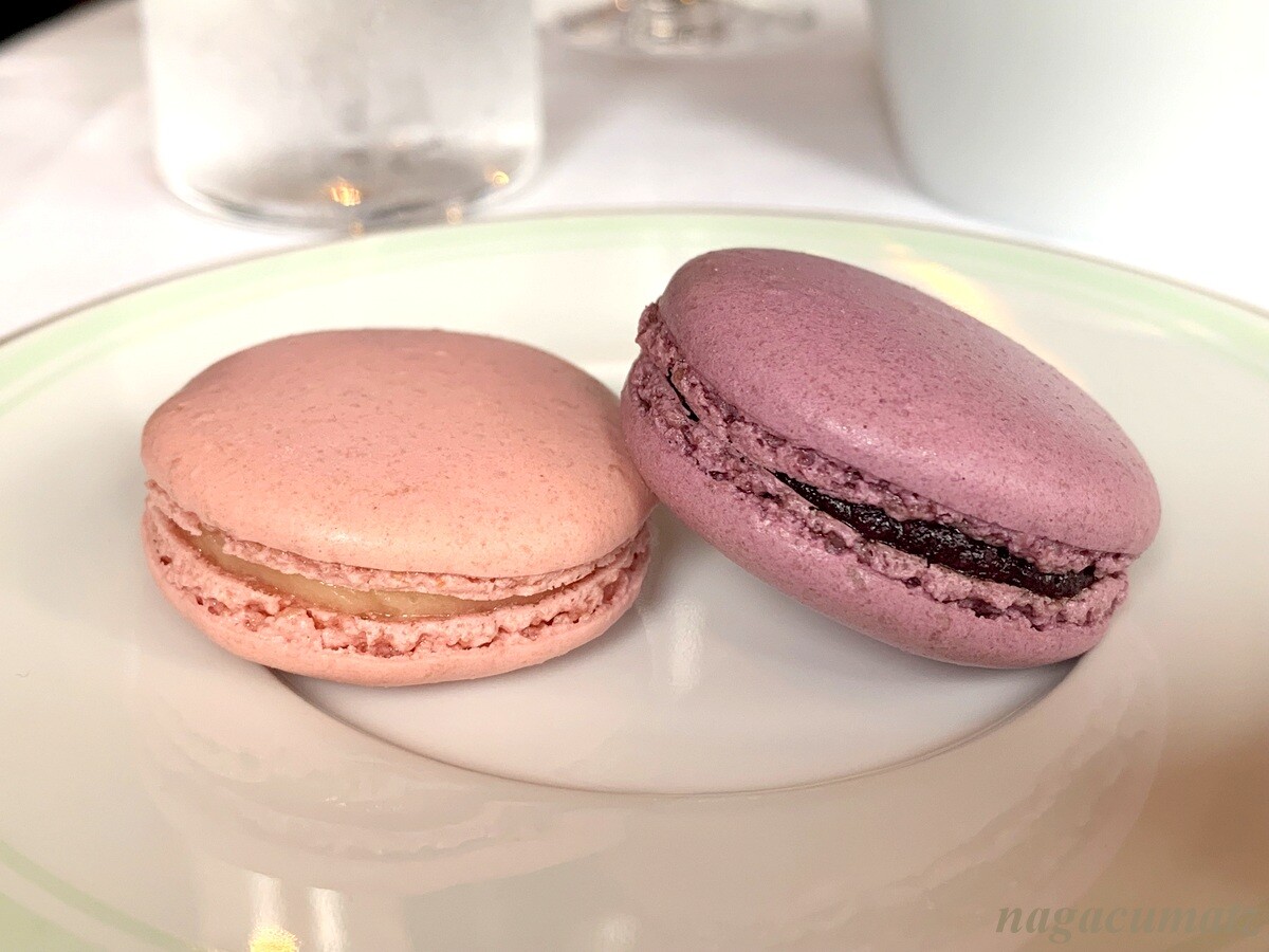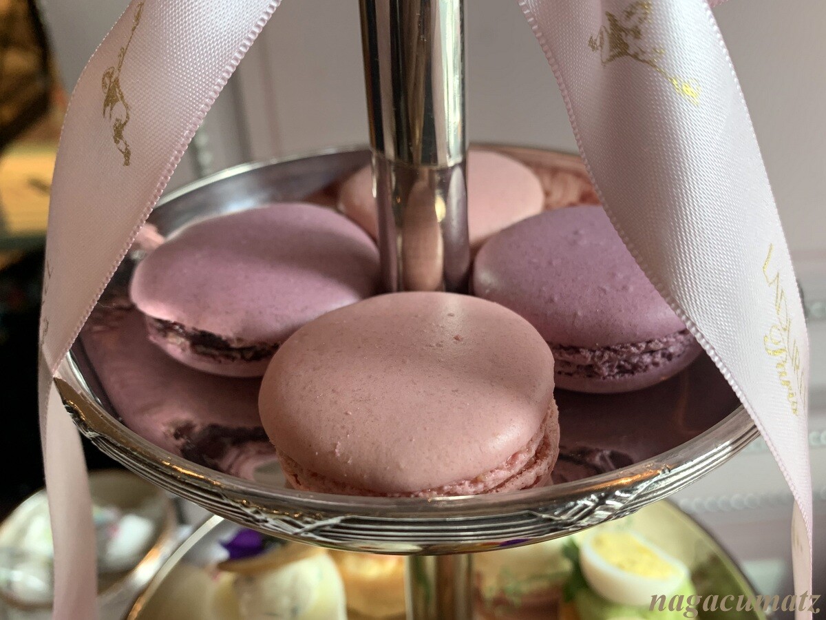 マカロンは各2個。ローズとカシス・ヴィオレット。さすがにラデュレのマカロンは美味。