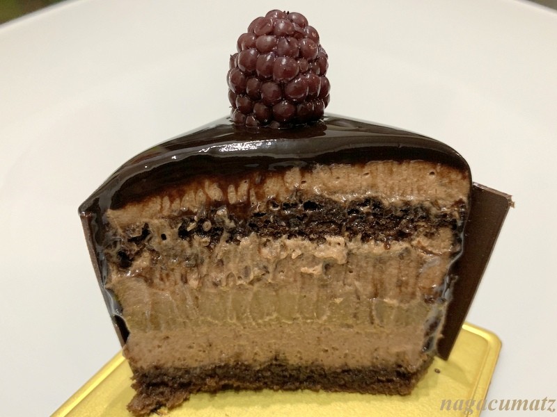 とても柔らかいチョコレートのムースやアールグレイのムースなどの層をチョコレートでコーティングし、周りに薄い板状のチョコレートで覆ってある。濃厚で非常に美味。