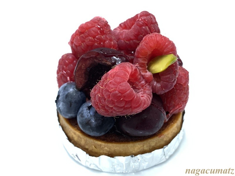 タルトフリュイルージュ 600円タルト台がサクサクで美味しい。てんこ盛りのラズベリー、ブルーベリー、アメリカンチェリーが乗る。