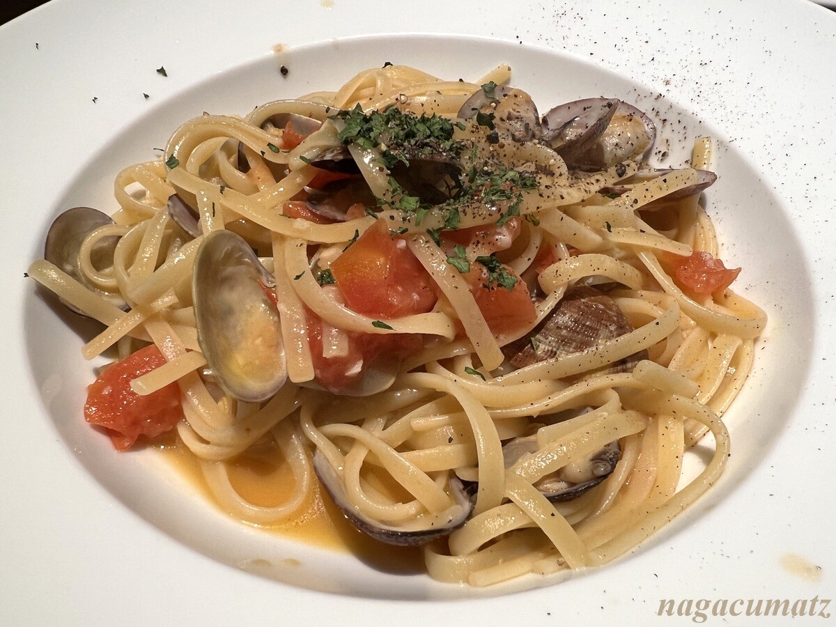 分厚く大きなブリの切り身が10切れ以上あり、ズッキーニ、人参、玉葱、パプリカなどが載り、オリーブオイルやカラスミがかかっている。美味しい。既にそのボリュームに圧倒された。