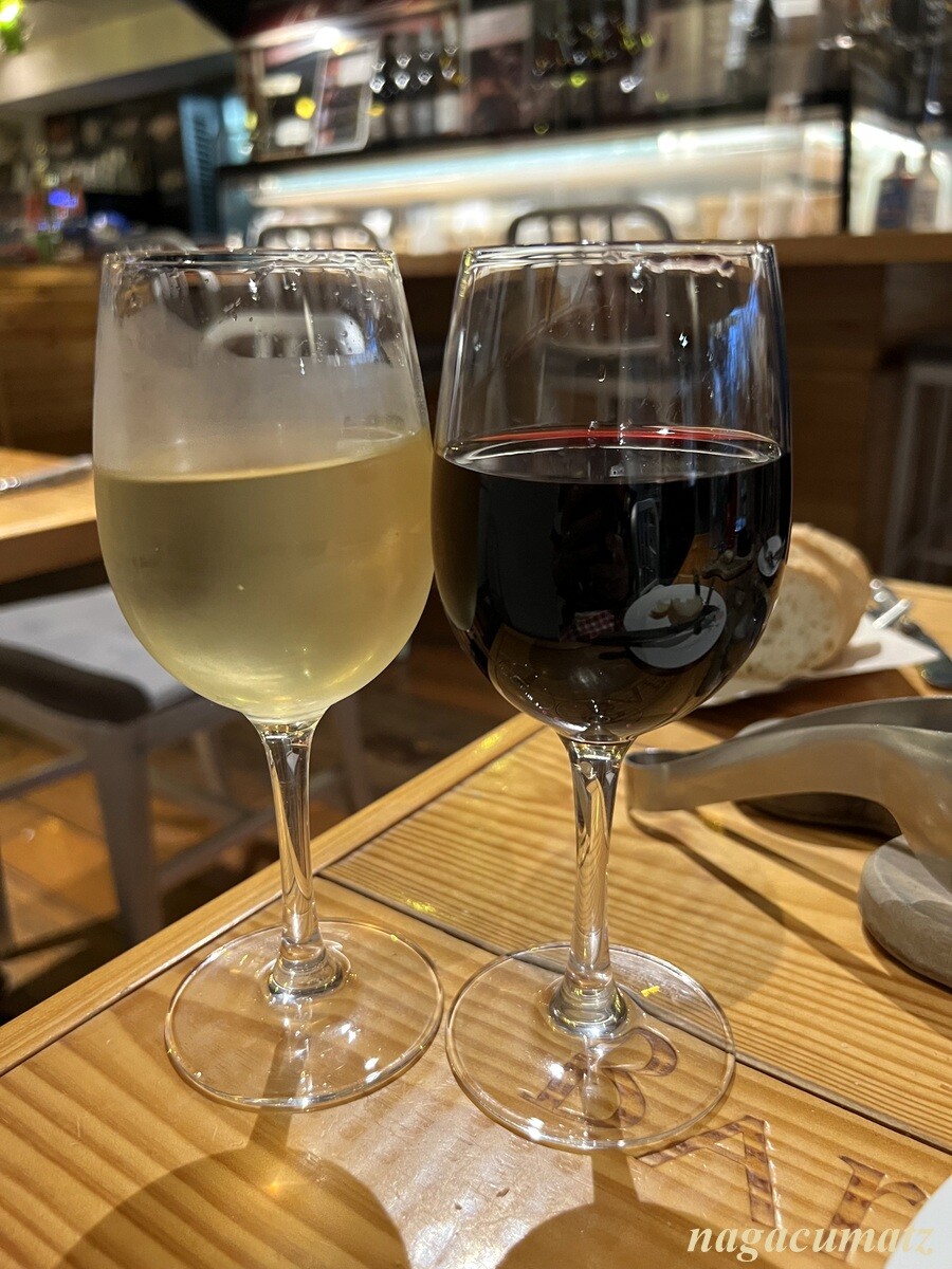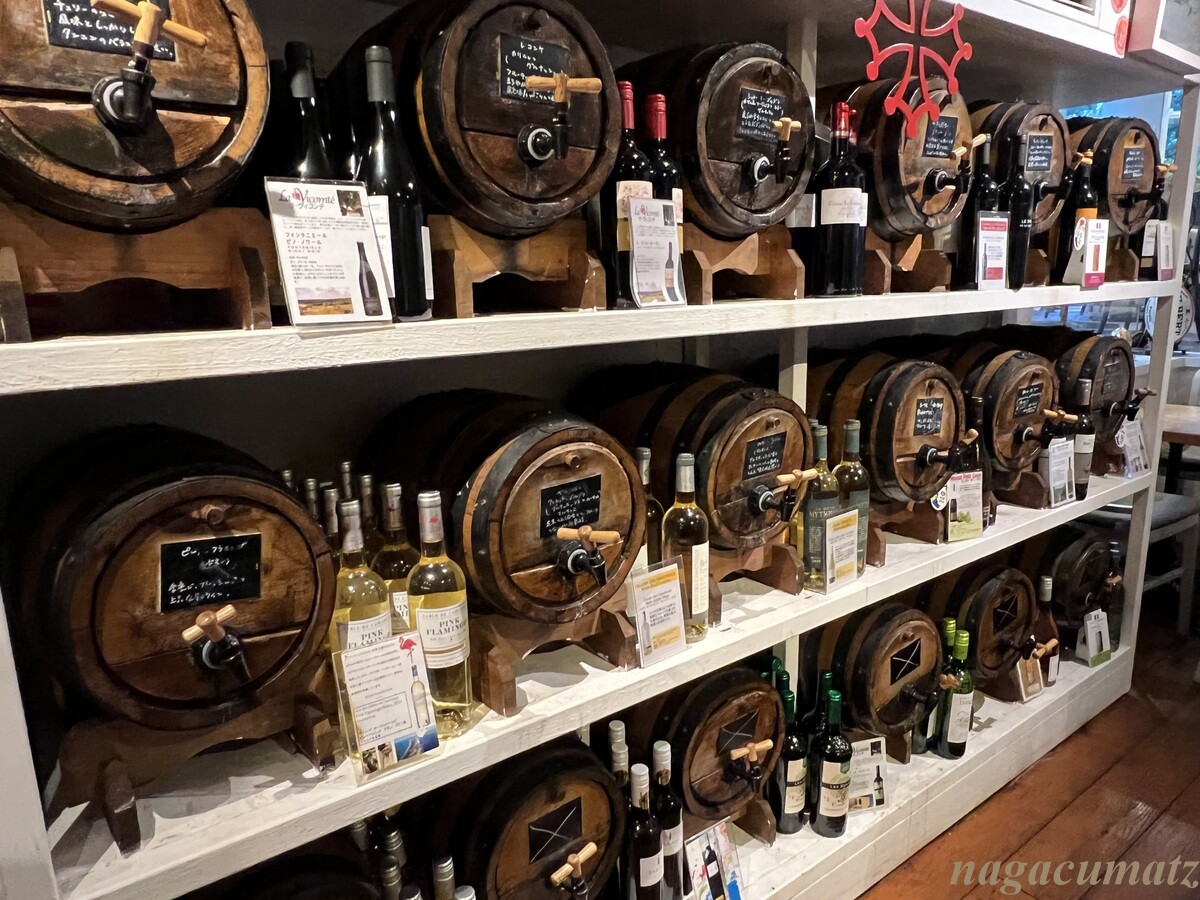 グラスワインは、樽からとお店がセレクトしたものとがあるそうだが、樽をお願いすると、グラスを渡され、自分で試飲しながら好きなものを注ぐことが出来る。面白いので、樽のグラスを。