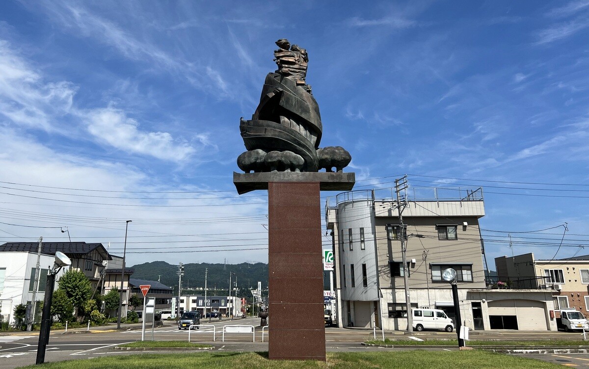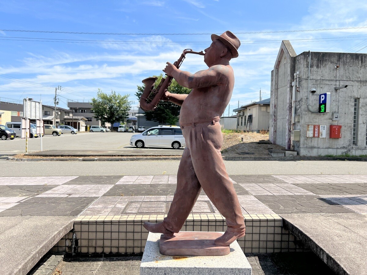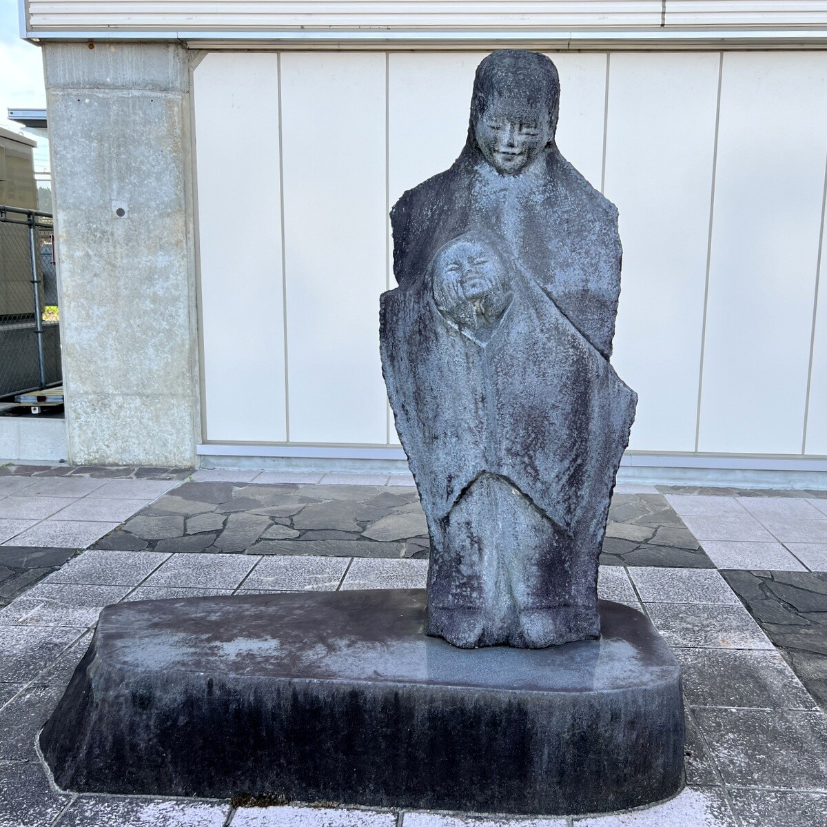 JR飯山線・北越急行ほくほく線十日町駅前の西口は、とても静かなのだが、色々な彫刻が多数あり、駅前に通じる広い通りの両側にも、いくつもの彫刻があった。