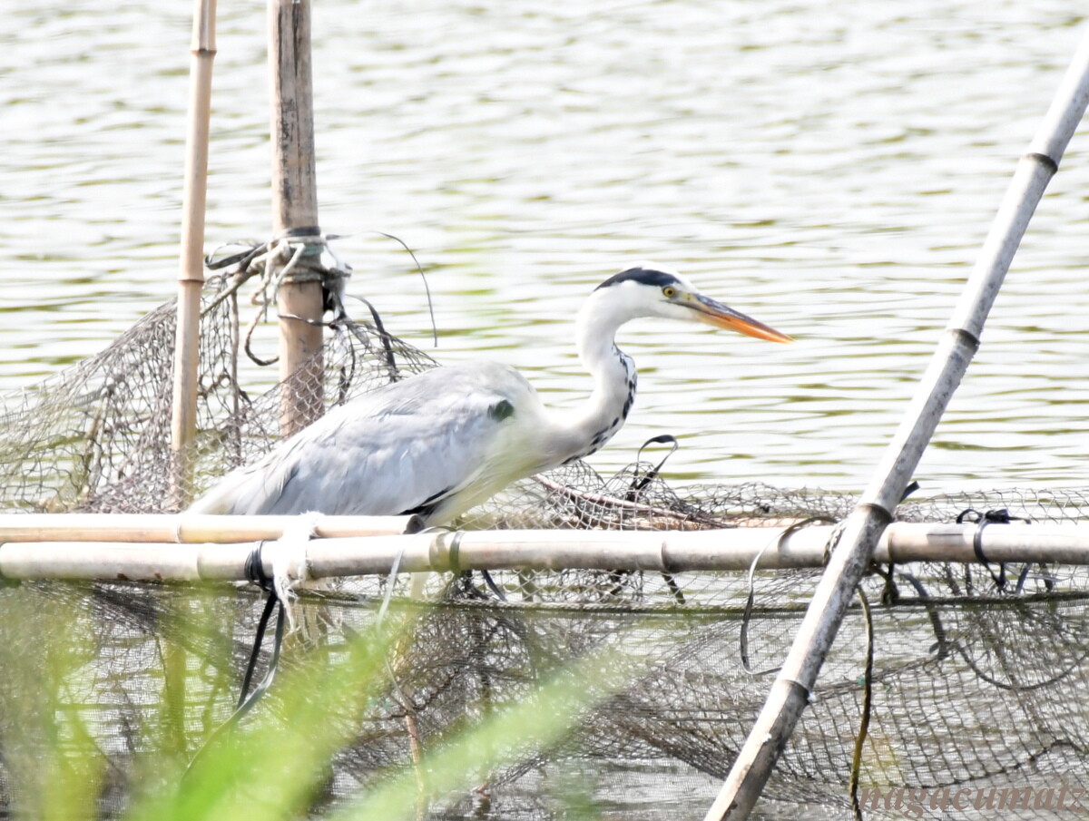 アオサギは、ちゃっかり漁師さん達がいなくなると網のそばにやって来た。