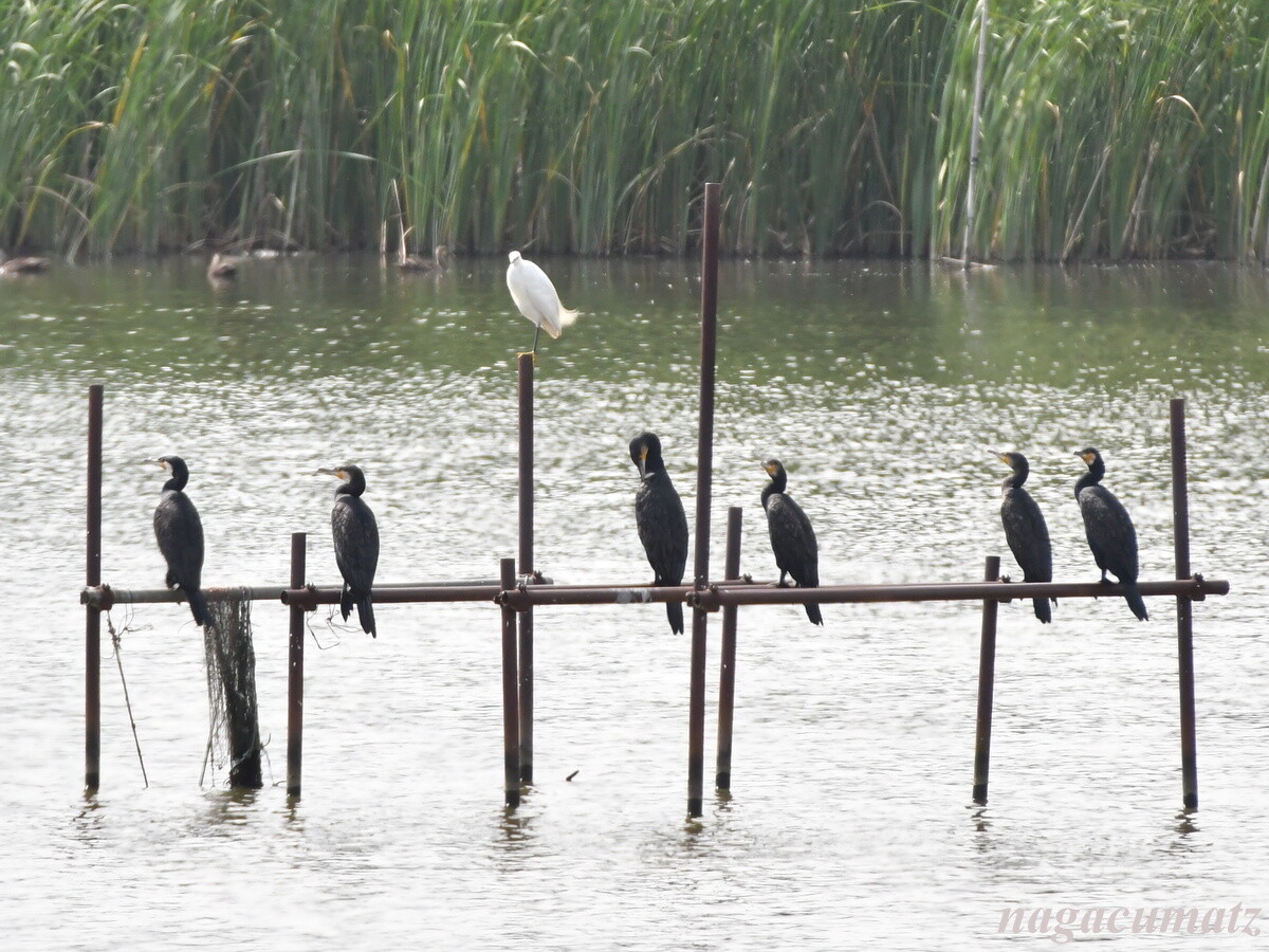 カワウとコサギ